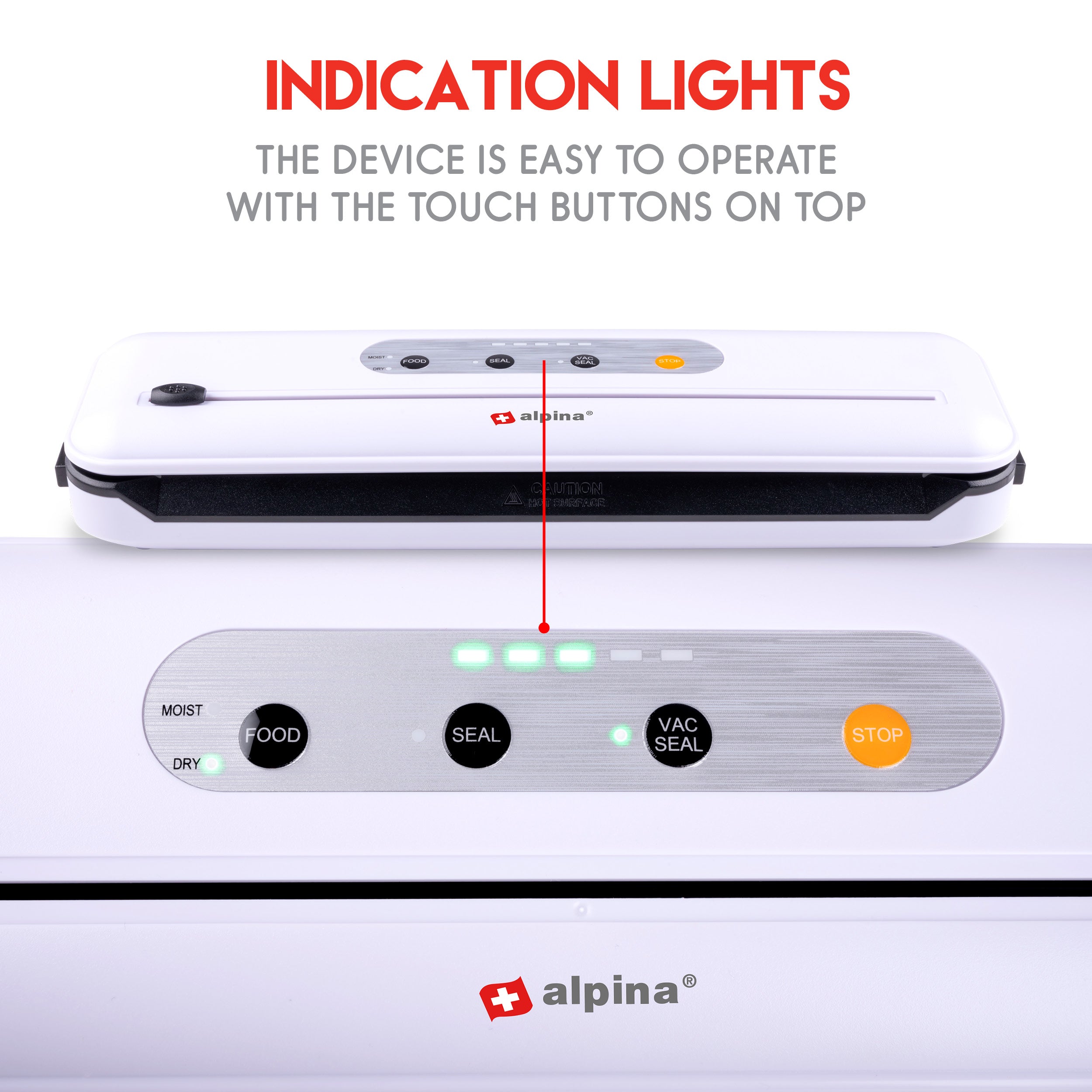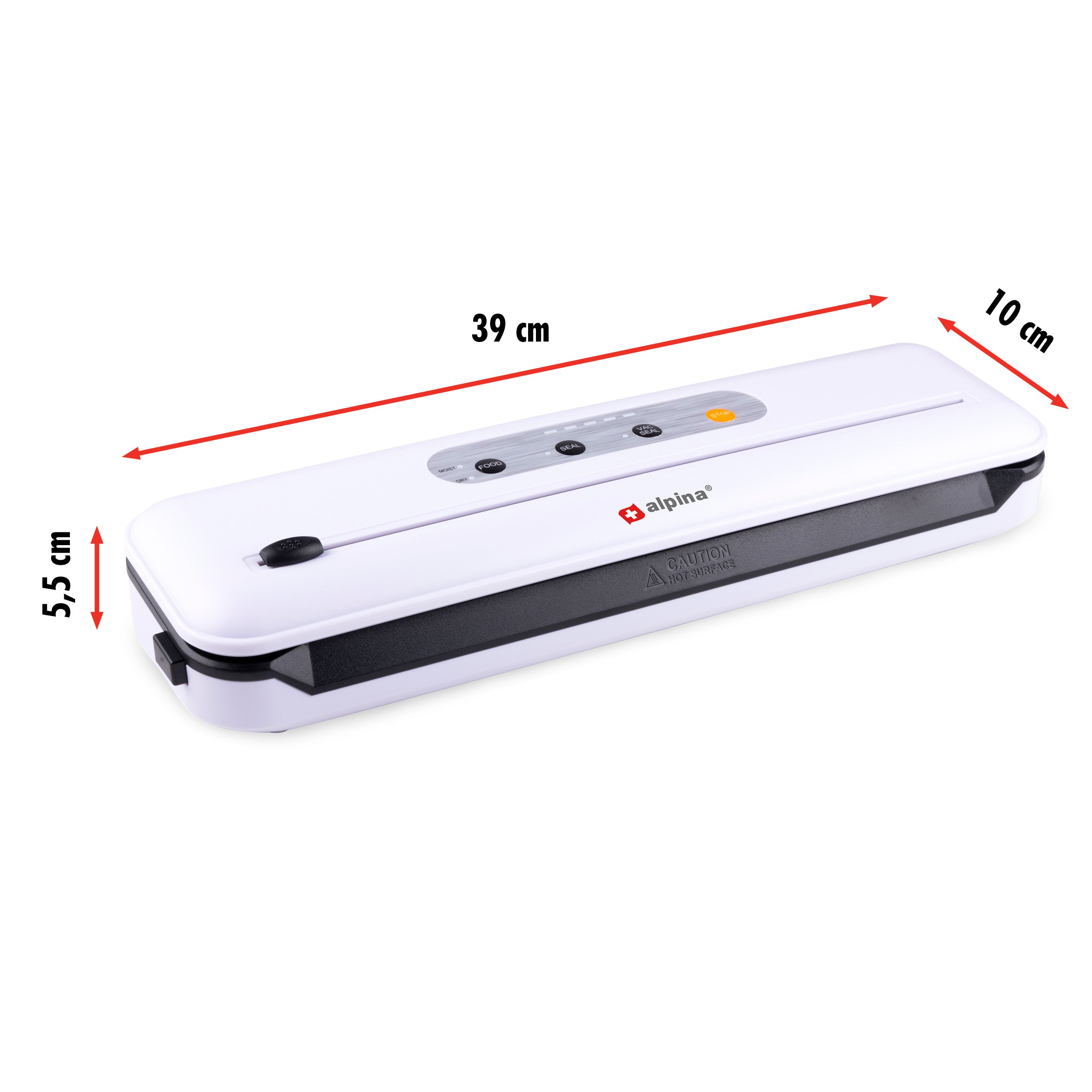 De vacumeermachine van alpina is een enorm handig apparaat om in huis te hebben. Binnen luttele seconden trek je de lucht uit een zak met voedsel en seal je de zak in 1 moeite door. Zo blijft je eten tot 5 keer langer vers wanneer je het in de koelkast bewaart en je vriest het ook gemakkelijker in. Je verspilt zo minder etensresten en daardoor bespaar je dus ook op je portemonnee. Een vacuum sealer is dus een top-investering voor in de keuken.