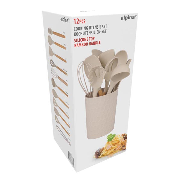 alpina Keukengerei 12-Delig - Siliconen met Bamboe Handvat