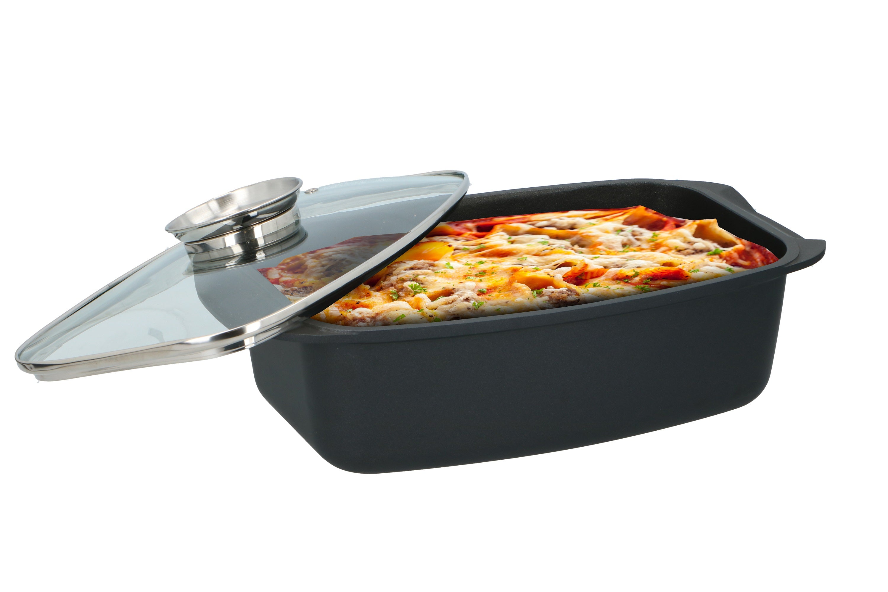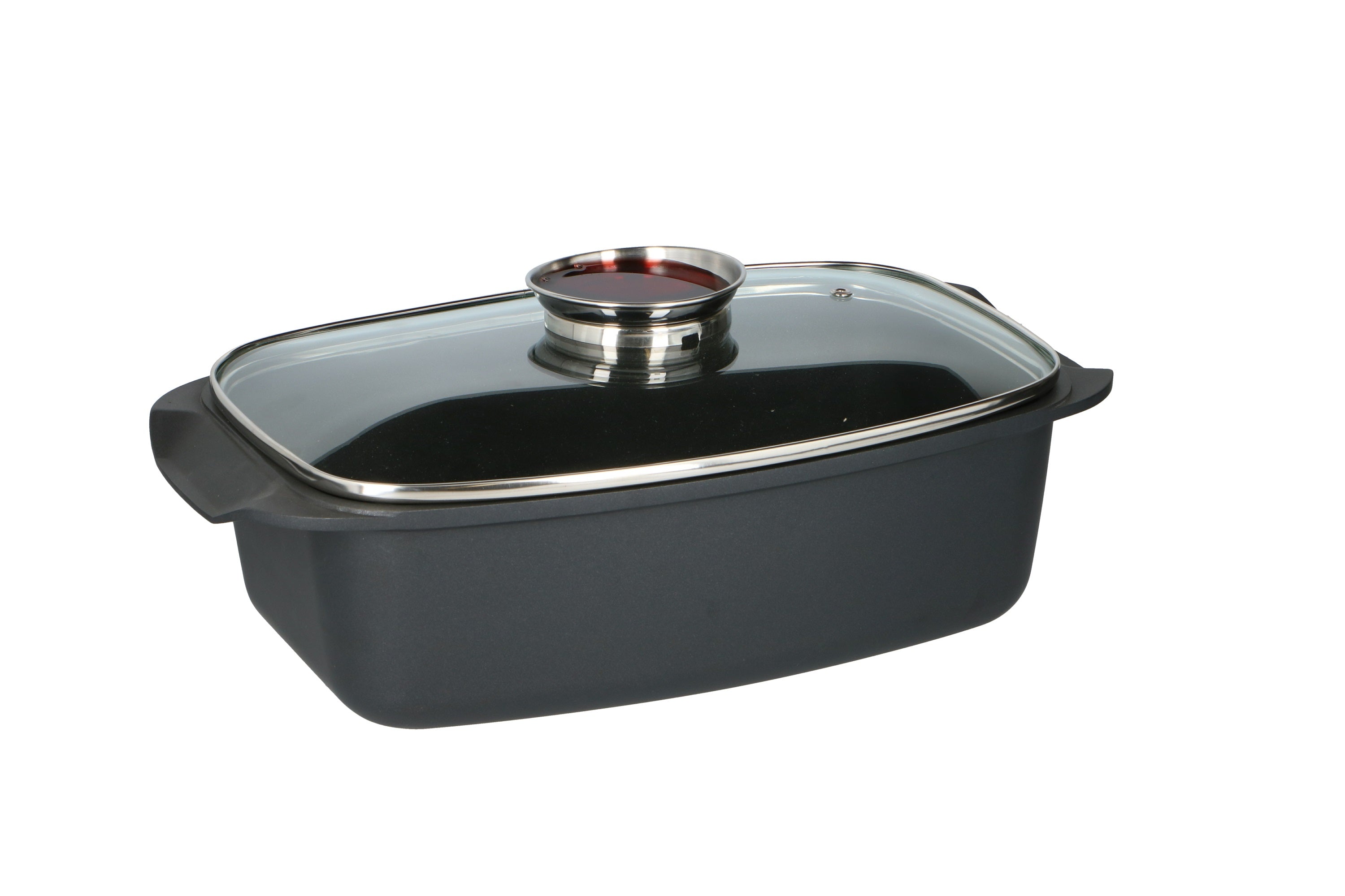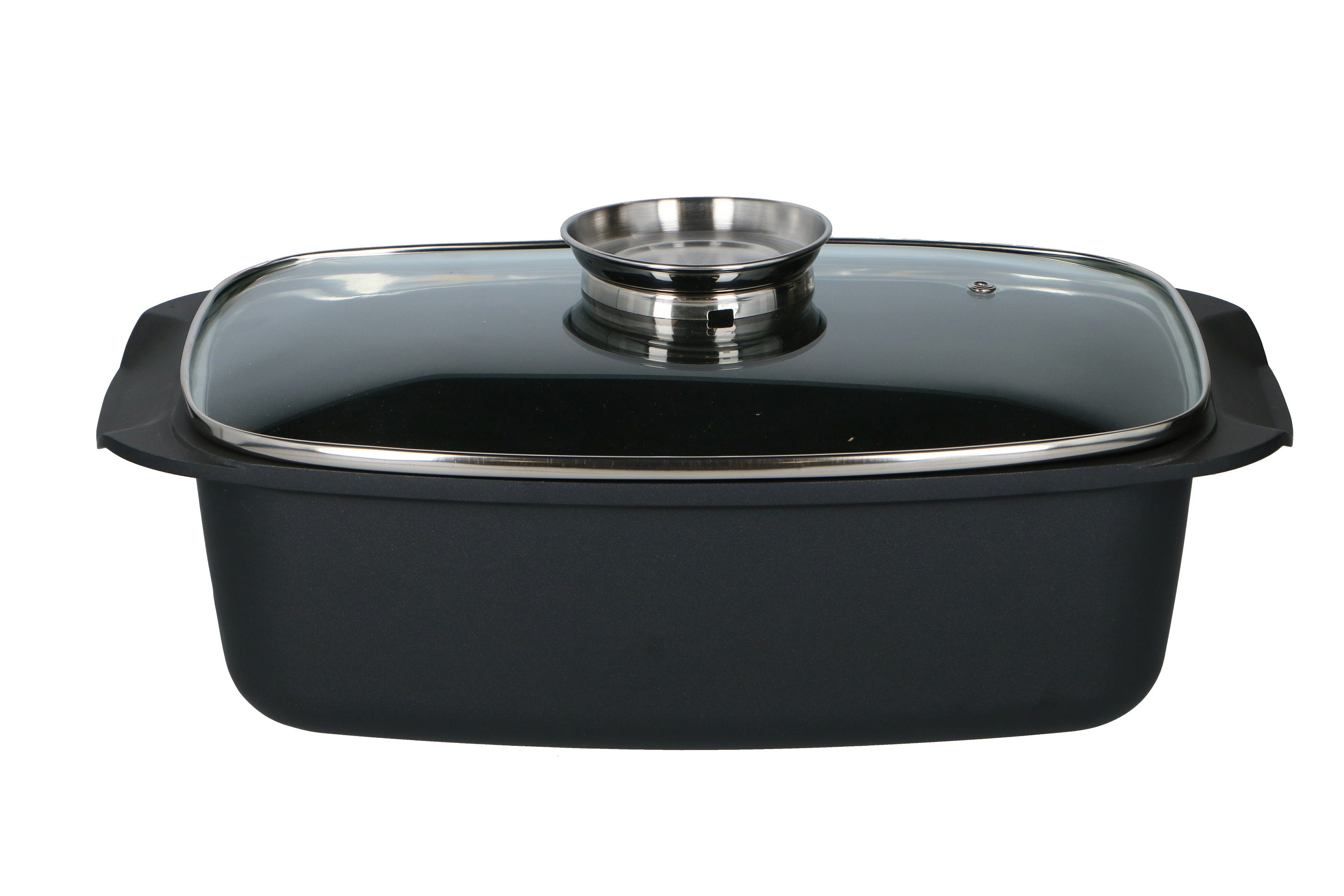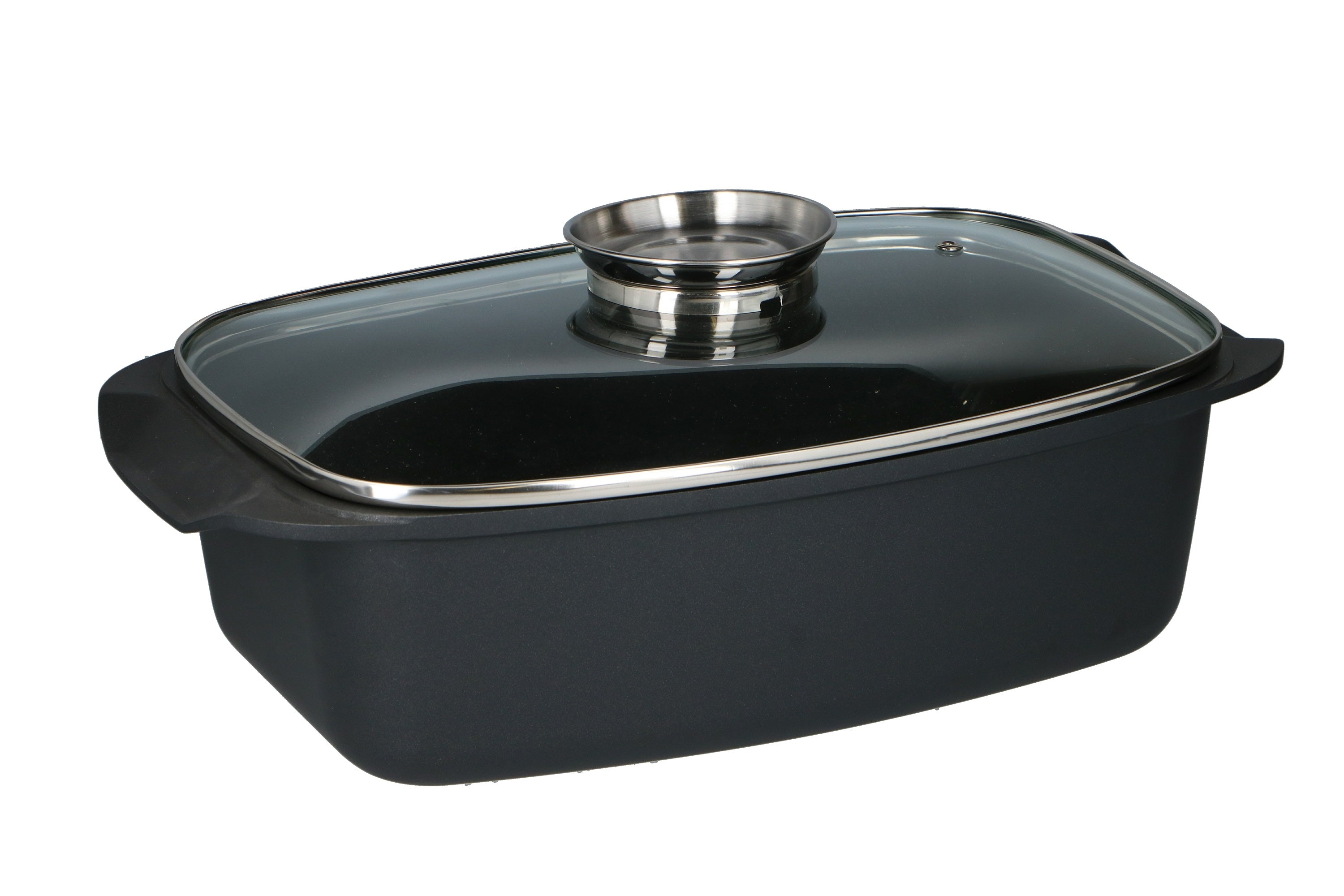 Met een afmeting van 39,5 x 22,5 x 10,8 cm en een inhoud van 5,5 liter bereid je gemakkelijk grote porties. Zo zet je met deze braadpan enorm diverse maaltijden neer voor het hele gezin. De mogelijkheden zijn eindeloos! De pan is geschikt voor een gasfornuis of een oven tot een temperatuur van maximaal 220 graden. Op een inductieplaat kun je de braadslede niet gebruiken.