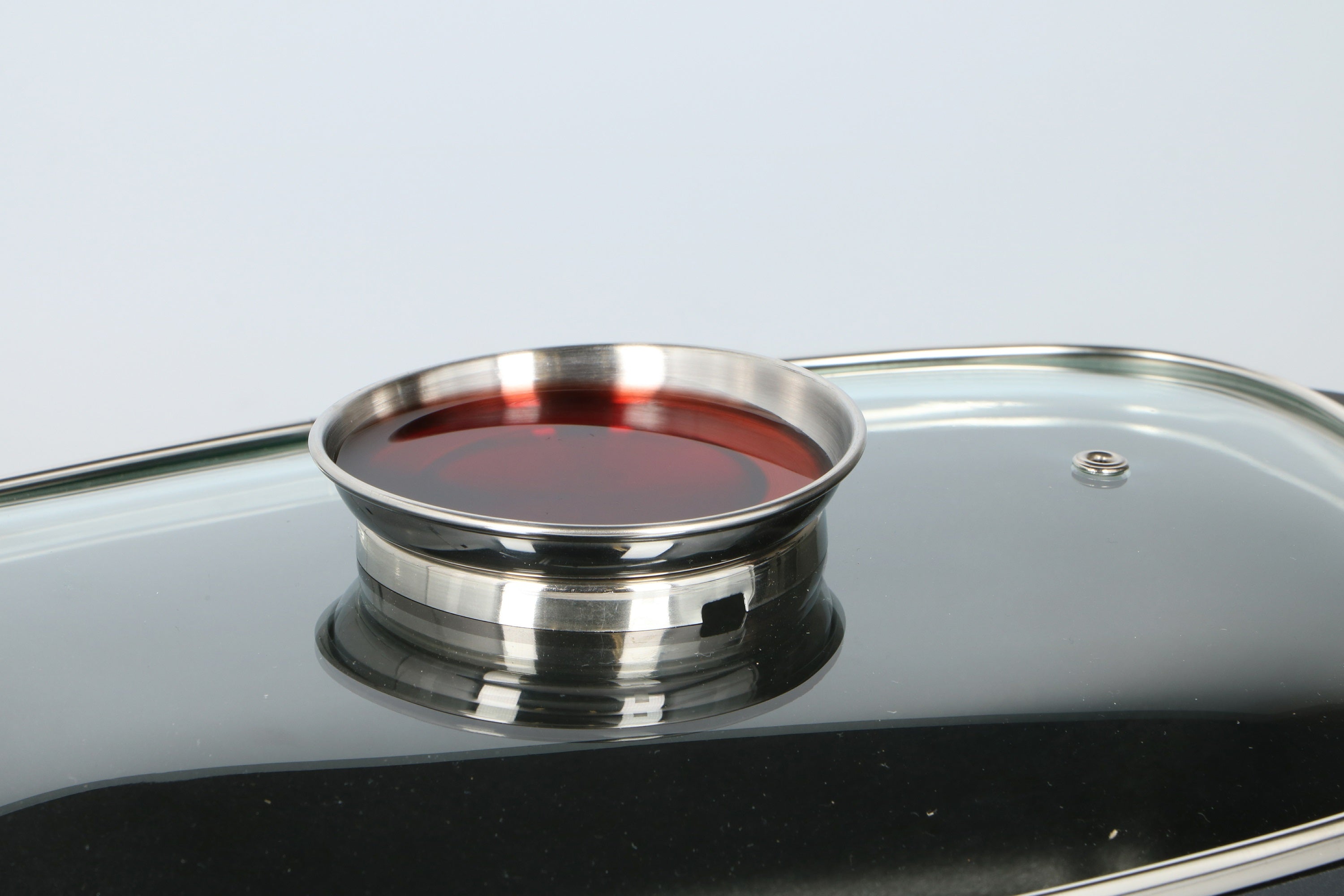 Je houdt je gerechten gemakkelijk in de gaten door de glazen deksel. De bolling zorgt er ook voor dat het verdampende water gelijkmatig over het eten wordt verdeeld. De braadpan heeft nog een handige bijkomstigheid, namelijk de aromaknop. Hiermee voeg je vloeistoffen toe aan je eten via het handvat. Zo maak je jouw stoofpot nog lekkerder met een scheut rode wijn, zonder dat je hier de deksel voor optilt. Ideaal! Probeer het voor jezelf en maak indruk op je vrienden.