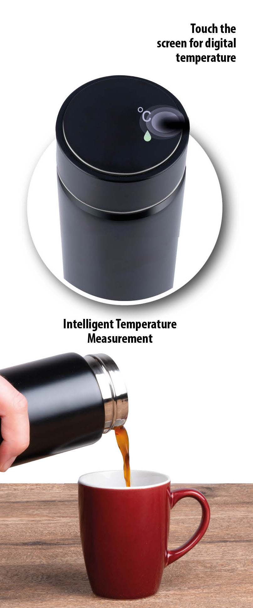 De alpina thermosfles is perfect voor het bewaren van zowel koude als warme dranken. Denk daarbij aan koffie, thee, water en frisdranken, maar bijvoorbeeld ook soep. Dankzij de roestvrij stalen behuizing, een dubbelwandige vacuüm geïsoleerde binnenkant en de antilek dop blijven koude vloeistoffen tot wel 24 uur koud en warme dranken tot wel 12 uur warm. Op de dop van de thermofles is een digitaal LED display bevestigt. Wanneer je hier met je vinger op tikt zie je precies wat op dat moment de temperatuur in de isoleerfles is. Je neemt de thermosfles overal gemakkelijk mee naar toe, en hoeft je dankzij de antilek dop geen zorgen te maken om lekkages.