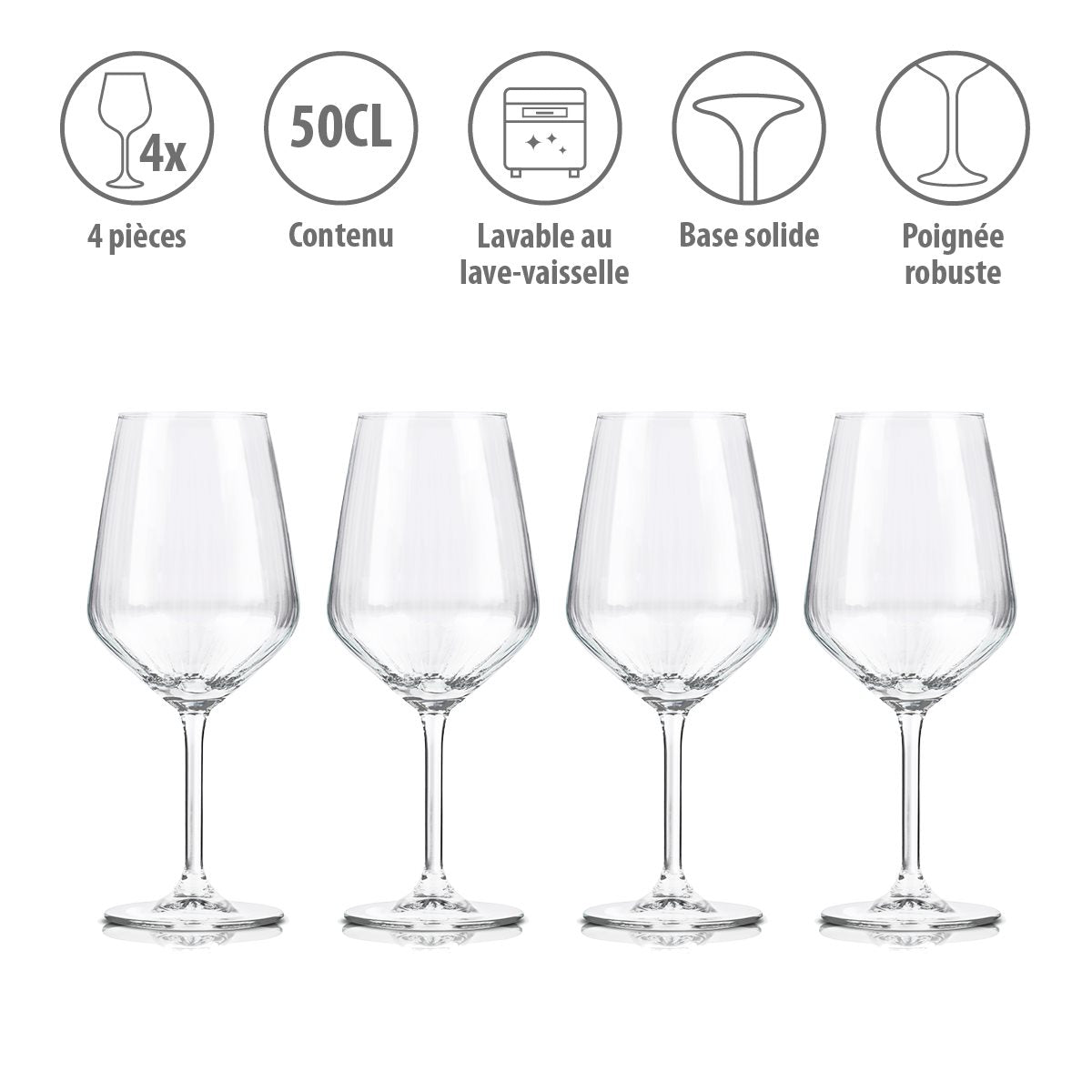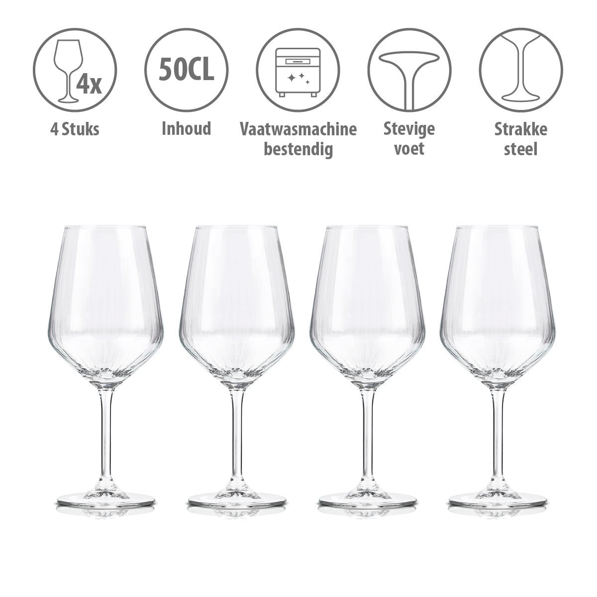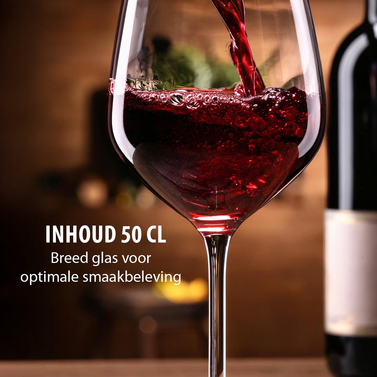 - Breed glas met een inhoud van 50 centilliter per wijnglas voor optimale smaakbeleving