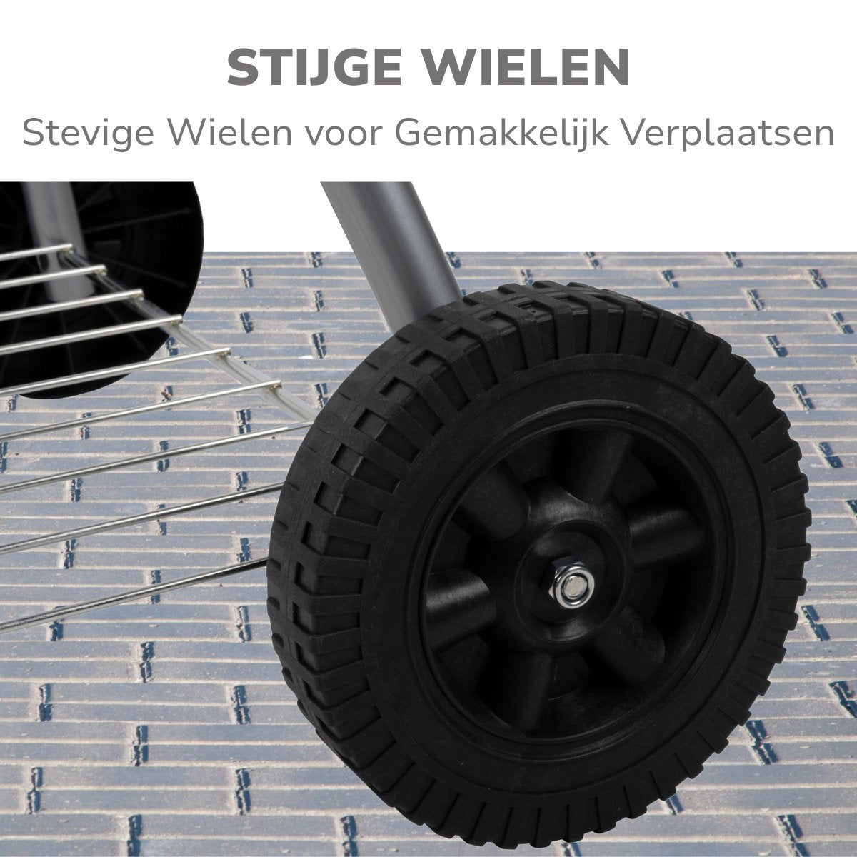 Onder de vuurschaal zit een asvanger die, zoals de naam al zegt, de as opvangt. Erg handig, want dit bespaart je nogal wat schoonmaakwerkzaamheden. Verplaatsen van de barbecue gaat gemakkelijk dankzij de twee wieltjes en de twee handvatten op de vuurschaal.
