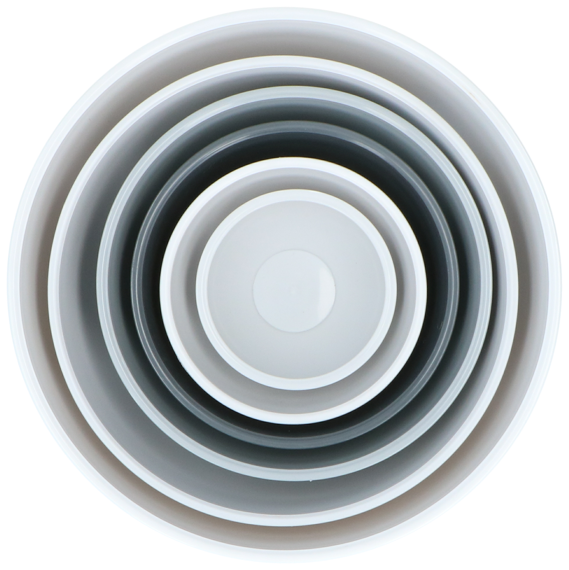 De 6 mengkommen passen netjes op volgorde van grootte in elkaar dus opbergen gaat gemakkelijk en compact. Qua vormgeving en de uitvoering in wit en verschillende grijstinten passen ze in elke moderne keuken.