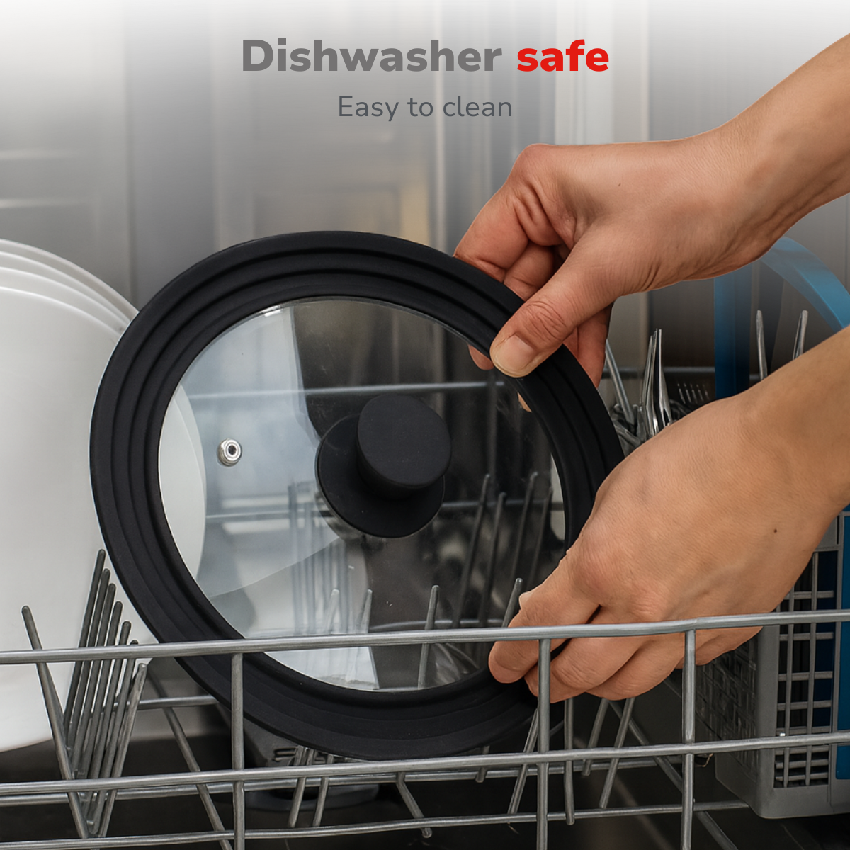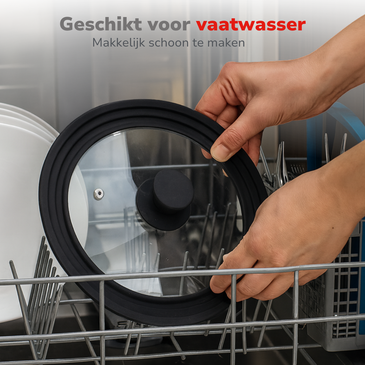 Het heldere glas van de deksel stelt je in staat om het kookproces nauwlettend in de gaten te houden zonder de deksel op te tillen en warmte te laten ontsnappen. Dit bevordert niet alleen de efficiëntie, maar maakt het ook eenvoudig om de gaarheid van je gerechten te controleren. Daarnaast is de alpina universele deksel van glas eenvoudig te reinigen. Dankzij het duurzame glas en de hoogwaardige materialen is hij vaatwasserbestendig, wat het schoonmaken na het koken een fluitje van een cent maakt.