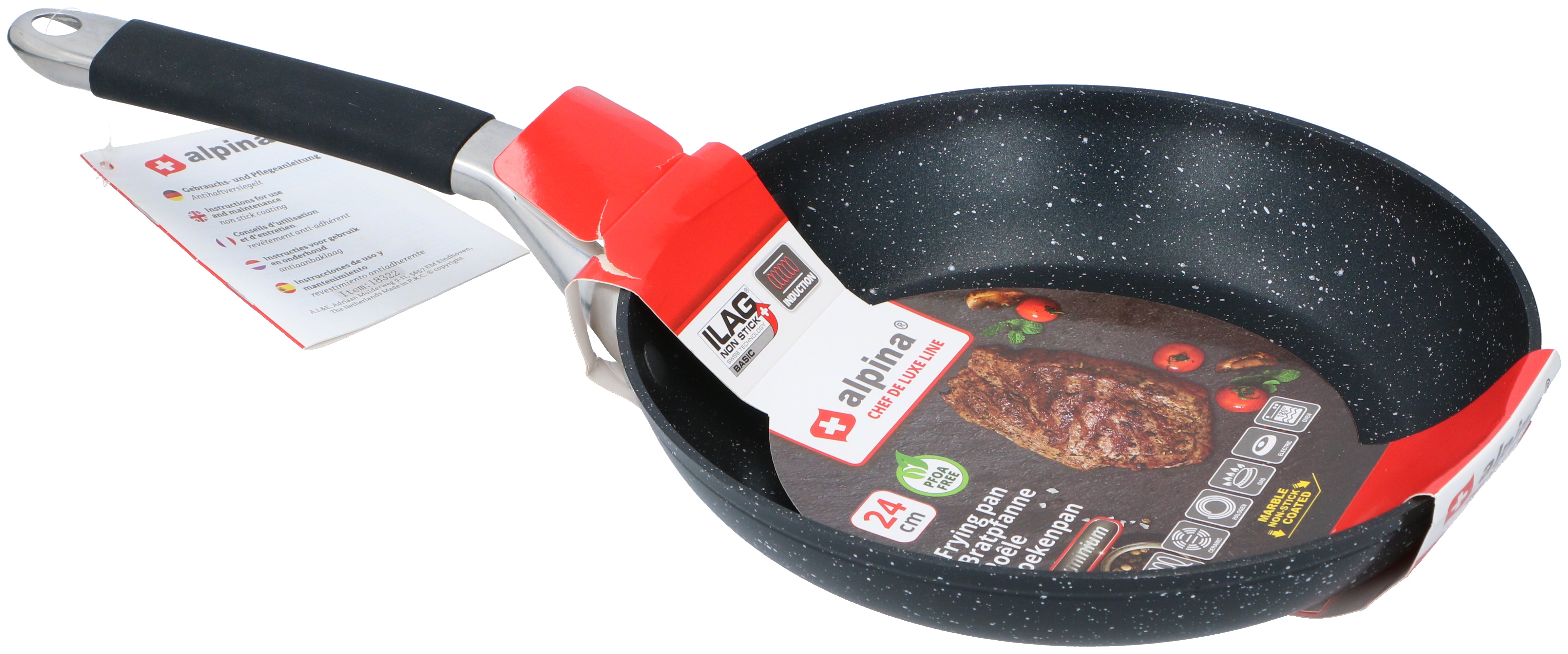 Deze koekenpan uit de 'Chef de Luxe Line' van alpina heeft een fijne doorsnee van 24 centimeter. Het maakt niet uit welk soort fornuis je hebt; gas, keramisch, halogeen, elektrisch of inductie. De pan is geschikt voor alle warmtebronnen. Hij kan zelfs in de oven tot een maximum van 180°C. Gerechten bakken met deze koekenpan niet aan dankzij de anti-aanbaklaag van Ilag Basic. Tijdens korte periodes kun je de pan verhitten tot 250°C. Bij langdurig bereiden is de pan bestand tot een temperatuur van 230°C. De pan is PFOA-vrij, dus veilig in gebruik.
