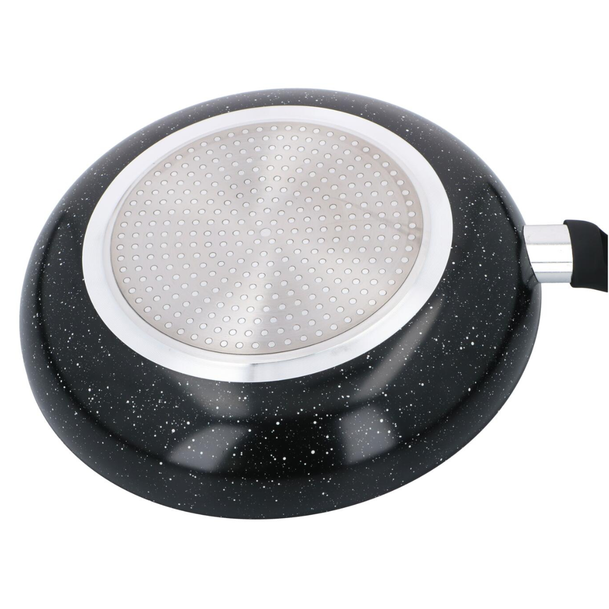 Met deze koekenpan van alpina met een doorsnee van 28 cm kun je heerlijke gerechten bakken, van een eitje en pannenkoeken tot groenteschotel en gebakken vis of vlees. De pan is PFOA-vrij, dus veilig en gezond te gebruiken om eten te bereiden. De bakpan is gemaakt van aluminium en heeft een anti-aanbaklaag, zodat je gerechten niet aankoeken. De koekenpan is geschikt voor koken op alle warmtebronnen. Het maakt dus niet uit of je elektrisch of keramisch kookt of een fornuis hebt dat werkt op inductie, halogeen of gas.