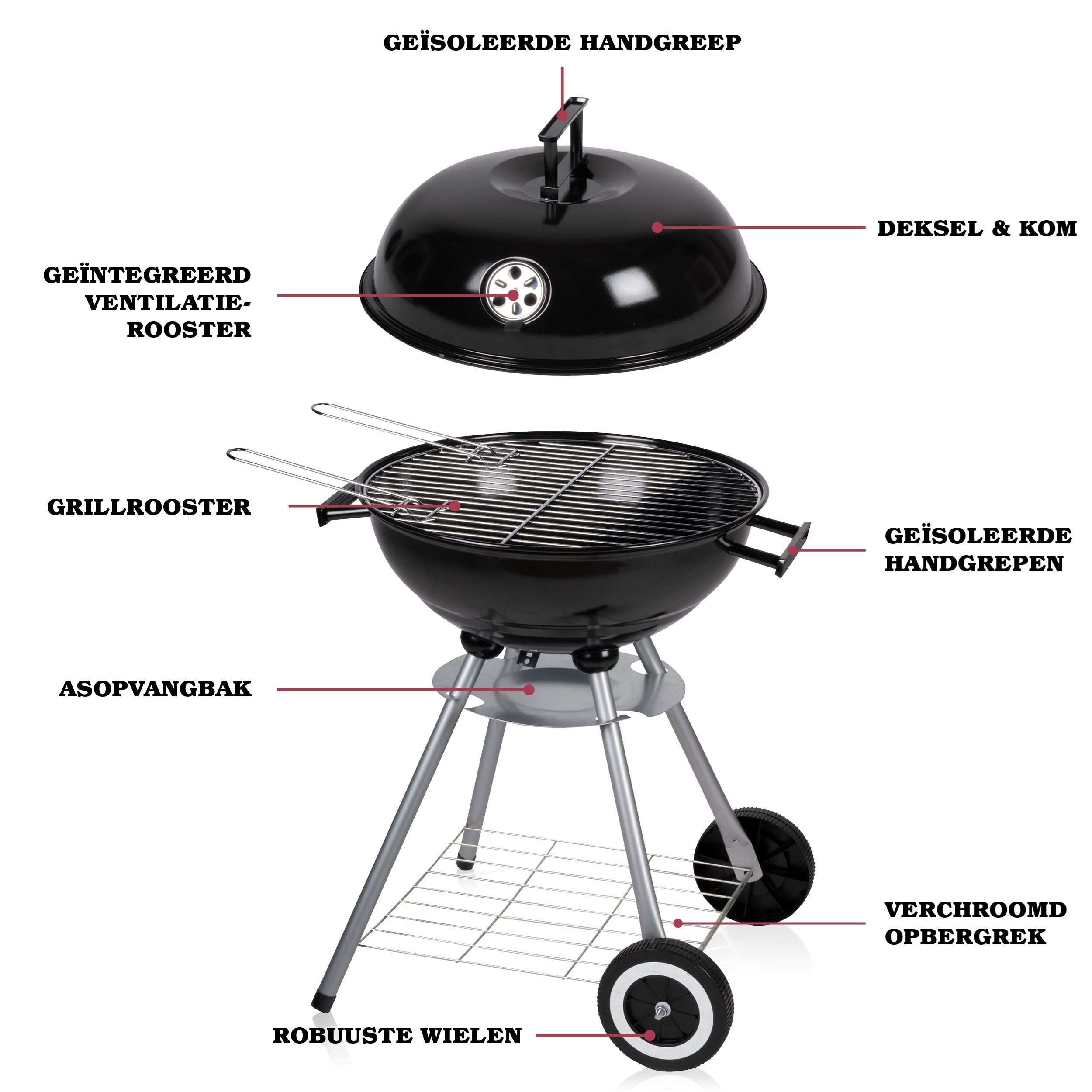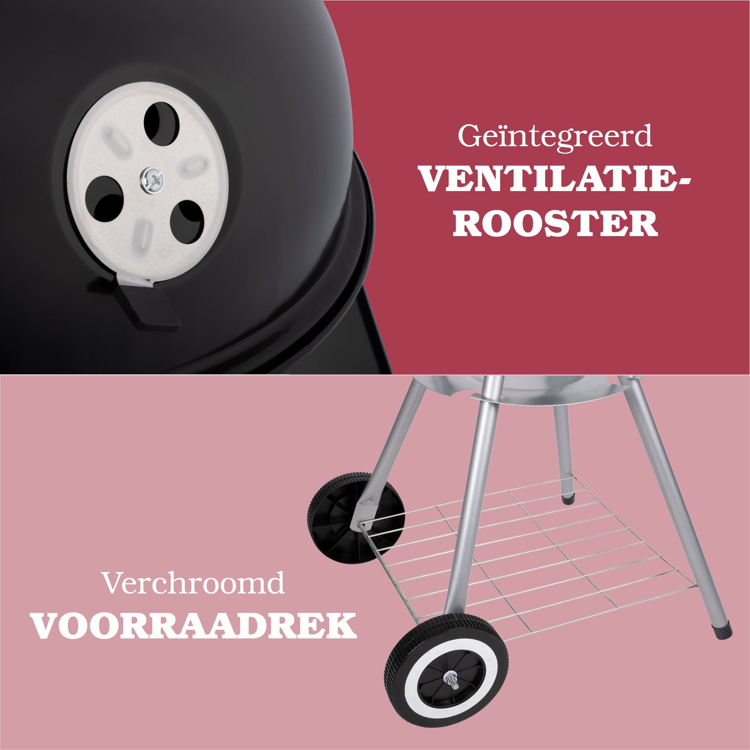 Bij een mooie zomerdag mag de kogel barbecue van Lone Star zeker niet ontbreken! Dankzij de ronde vorm en de bolle deksel heb je naast grillen ook de mogelijkheid om vlees, aardappelen en groente te garen voor een nog betere smaaksensatie. Toch liever grillen? Dit doe je gemakkelijk met behulp van het bijgeleverde BBQ rooster. De deksel hang je tijdens het grillen gemakkelijk op aan de daarvoor bestemde en geïntegreerde haak. Daarnaast heeft de deksel een ventilatierooster voor het gecontroleerd regelen van de perfecte temperatuur. De Lone Star barbeque is een houtskoolbarbecue. Dit betekent dat je houtskool nodig hebt om te kunnen barbecuen. Deze kolen geven soms veel as af, wat voor rommel op terras of in de tuin kan zorgen. De barbeque is daarom voorzien van een as-lek ventiel en een verwijderbare opvangschaal waarmee je het as na gebruik van de BBQ makkelijk op kunt ruimen.