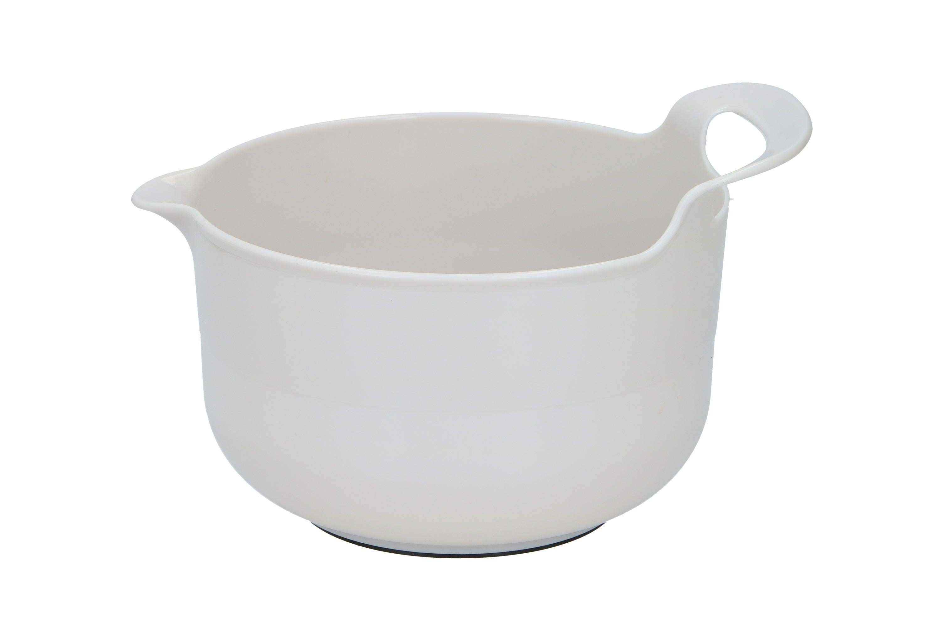 Iedere mengkom is uitgevoerd in stevig kunststof en heeft een groot handvat. Dit is erg handig omdat je de kom dan met je ene hand stevig vasthoudt terwijl je met de andere hand de garde of mixer hanteert. De beslagkommen hebben ook een schenktuit zodat je vloeistoffen gemakkelijk kunt overgieten.