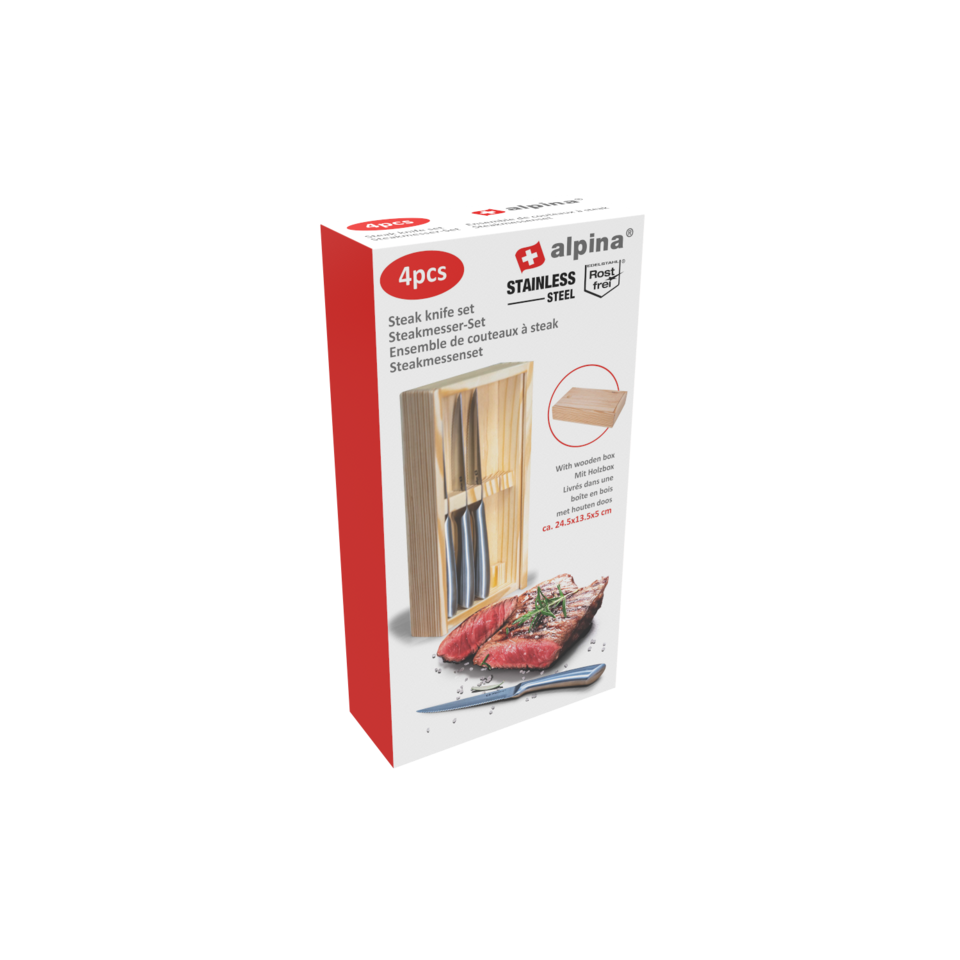 Specificaties alpina Steakmessenset in houten bewaardoos
