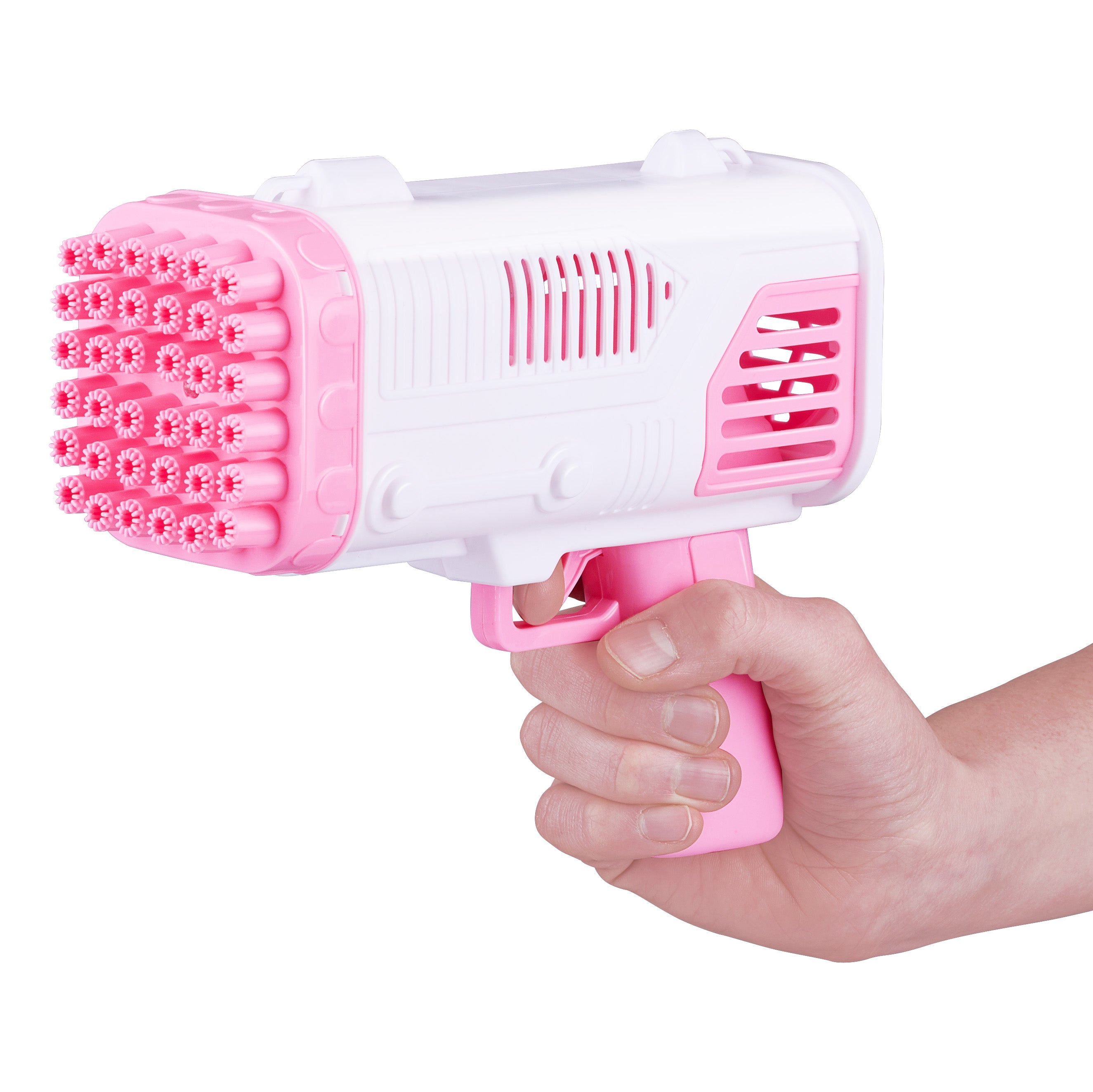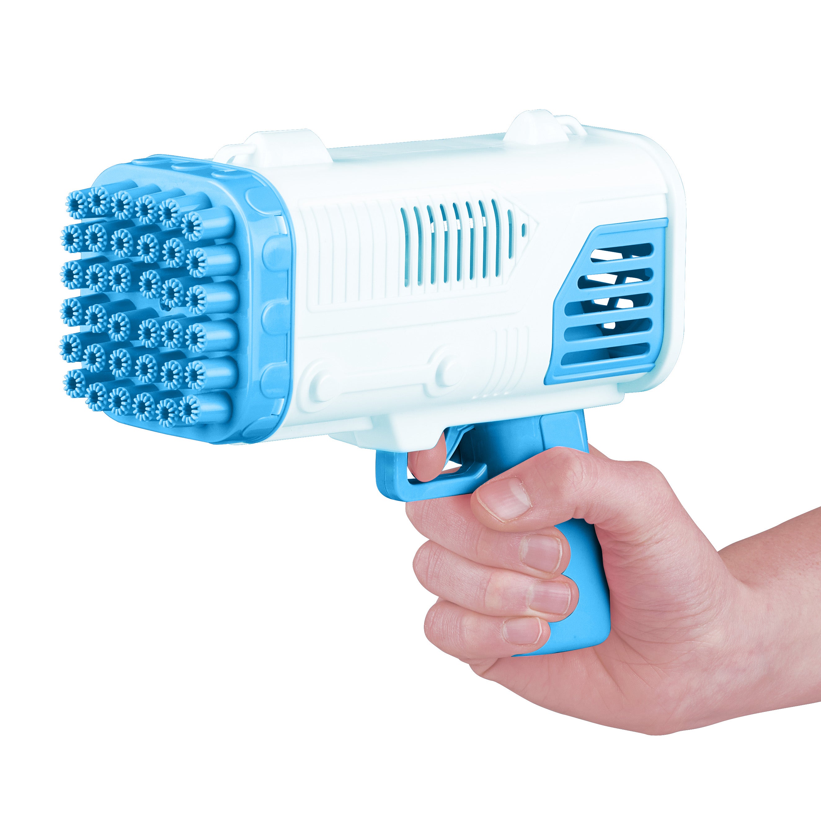 Beleef uren aan speelplezier met dit bellenblaas pistool van Bubblez. De bellenblazer met maar liefst 36 gaten werkt op 4 AA-batterijen en blaast automatisch bellen naar buiten. Om de bellenblaasmachine voor kinderen te laten werken hoef je enkel het meegeleverde potje met 50 milliliter aan bellenblaas aan de bellenblazer toe te voegen. Het bellenblaas pistool doet vervolgens al het werk. Wanneer de bellenblaas op is, kun je deze aanvullen met bellenblaas die je thuis maakt met water en zeep.