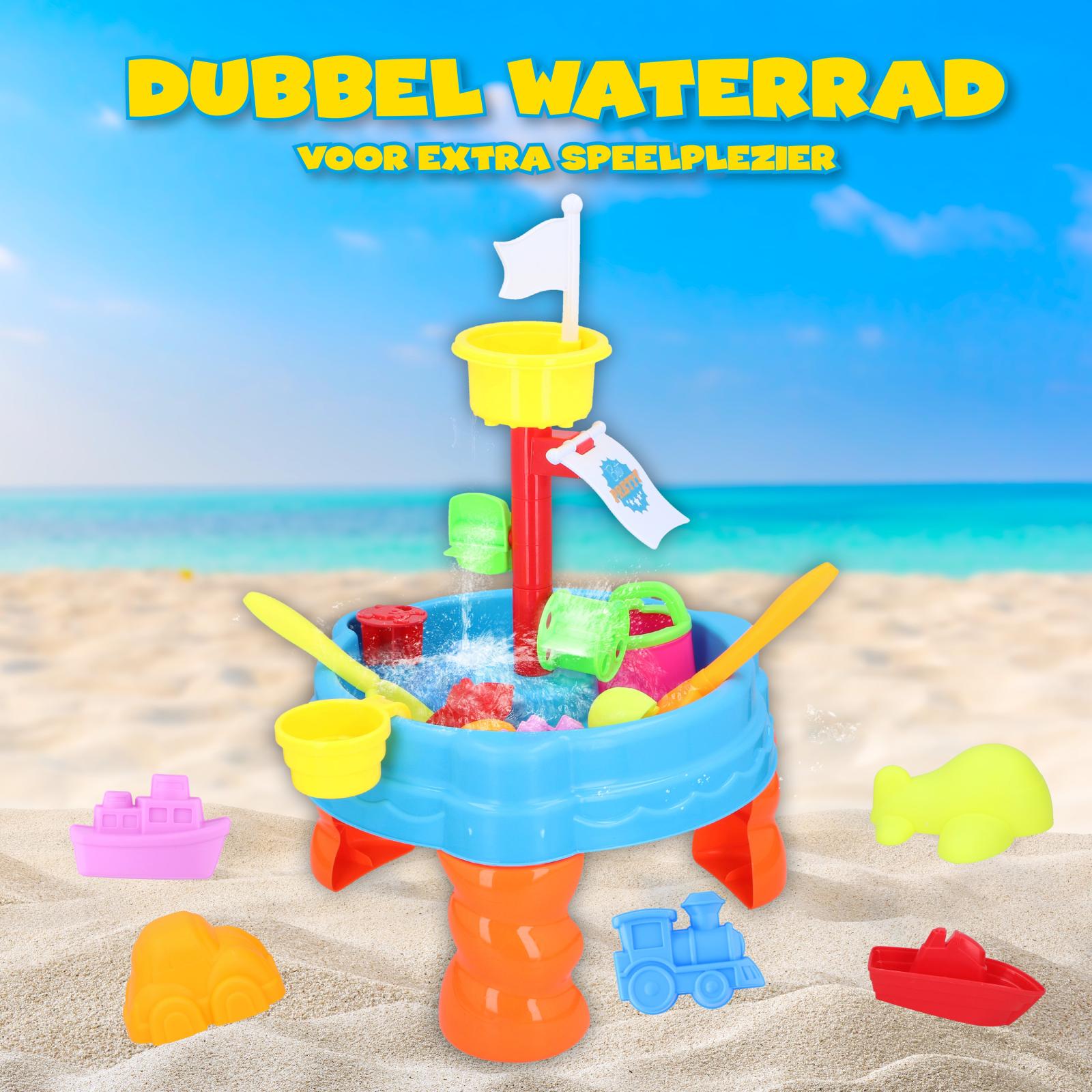 Op warme dagen vul je de speeltafel met water, wat heerlijke verkoeling biedt en natuurlijk speelplezier, onder andere met het dubbele waterrad. Kortom, onwijs veel zomerpret gegarandeerd met deze prachtige, compacte speeltafel!