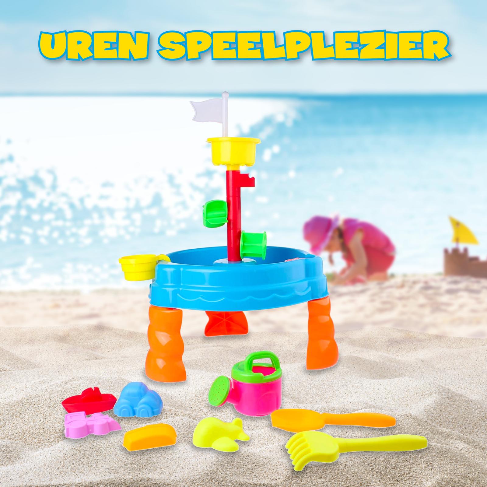 Bij de zand- en watertafel zitten een schepmandje, harkje, schepje en gieter plus 5 vormpjes. Kinderen kunnen zich hiermee urenlang vermaken. Met de meegeleverde accessoires maken ze bouwwerken van zand en harken ze alles netjes aan. Dit is heerlijk buitenspeelgoed.