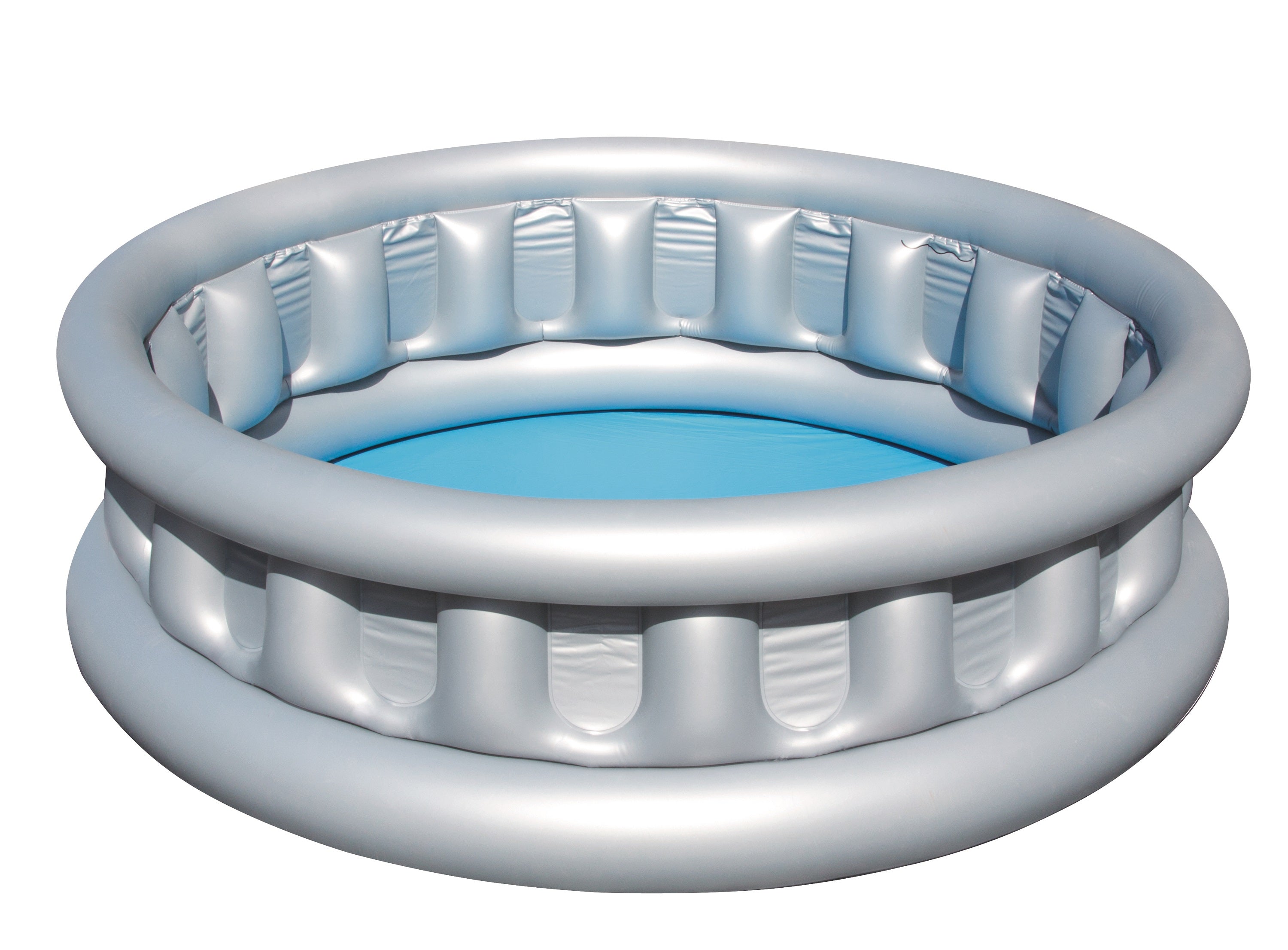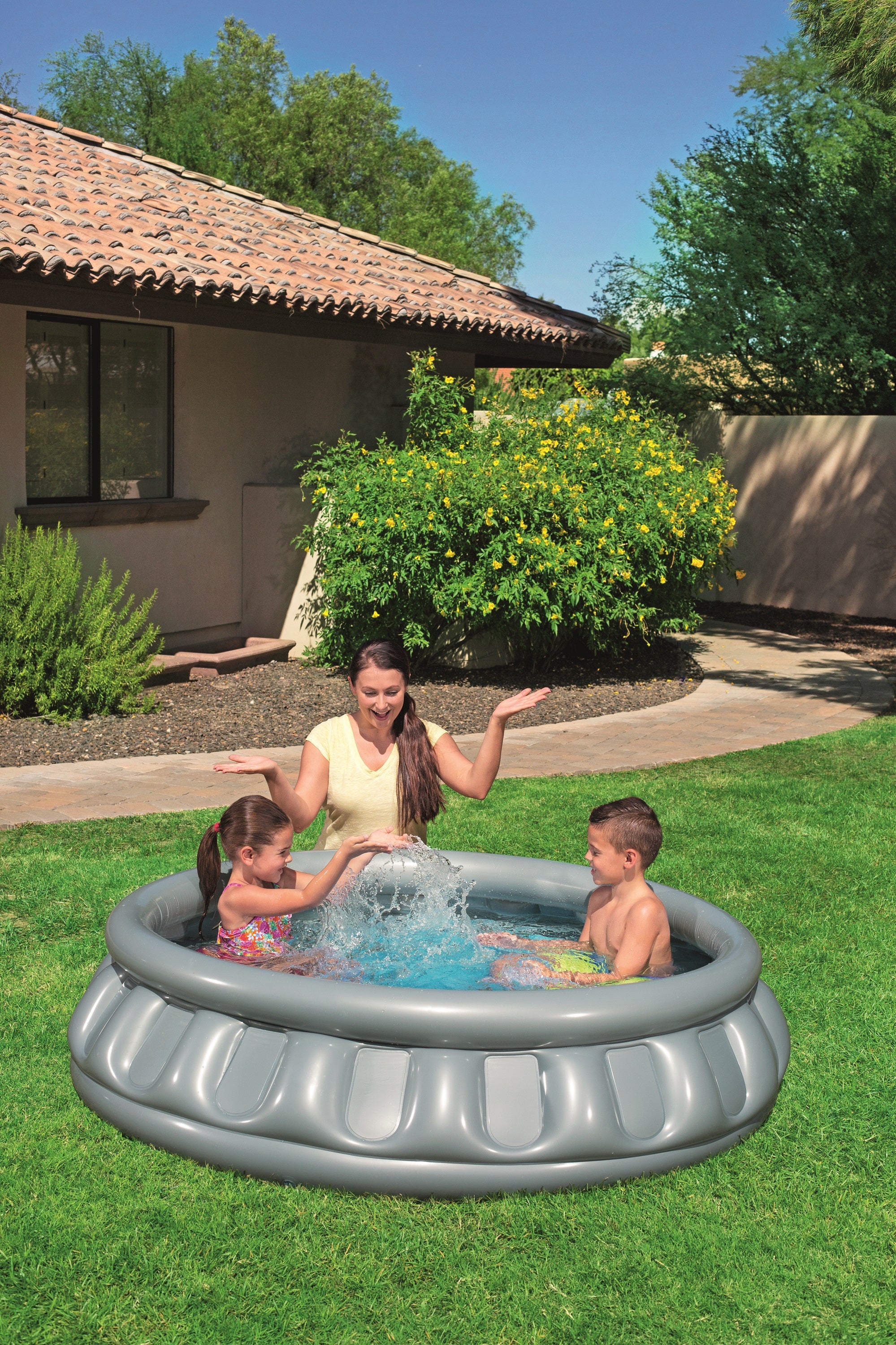 Het Bestway speelzwembad is gemaakt van stevig vinyl in een ronde vorm met ruimteschip uitstraling. Het kinderbad is slechts 33 centimeter hoog en daardoor geschikt voor kinderen vanaf 3 jaar en ouder, mits er toezicht is van een volwassene. Je blaast het zwembadje binnen de kortste keren op. In het opblaaszwembad gaat een maximale inhoud van 512 liter water.