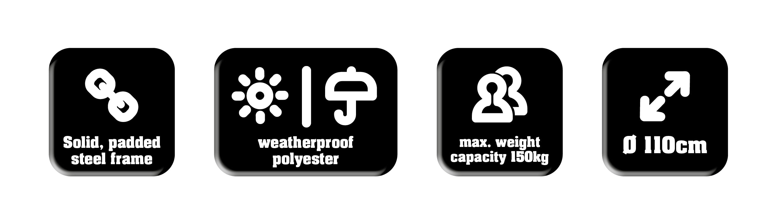Met een diameter van 110 centimeter en een maximaal draaggewicht van 150 kilogram is deze nestschommel zeker niet alleen voor één persoon bedoeld. Alhoewel dat natuurlijk ook kan met deze ruime ligschommel. Laat de kinderen wat vriendjes of vriendinnetjes uitnodigen of geniet met het hele gezin van deze fantastische nest schommel.