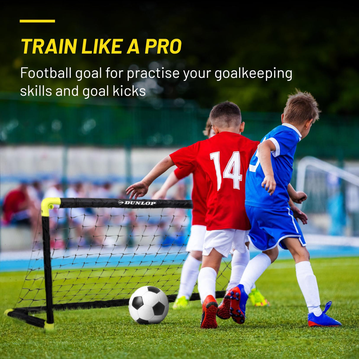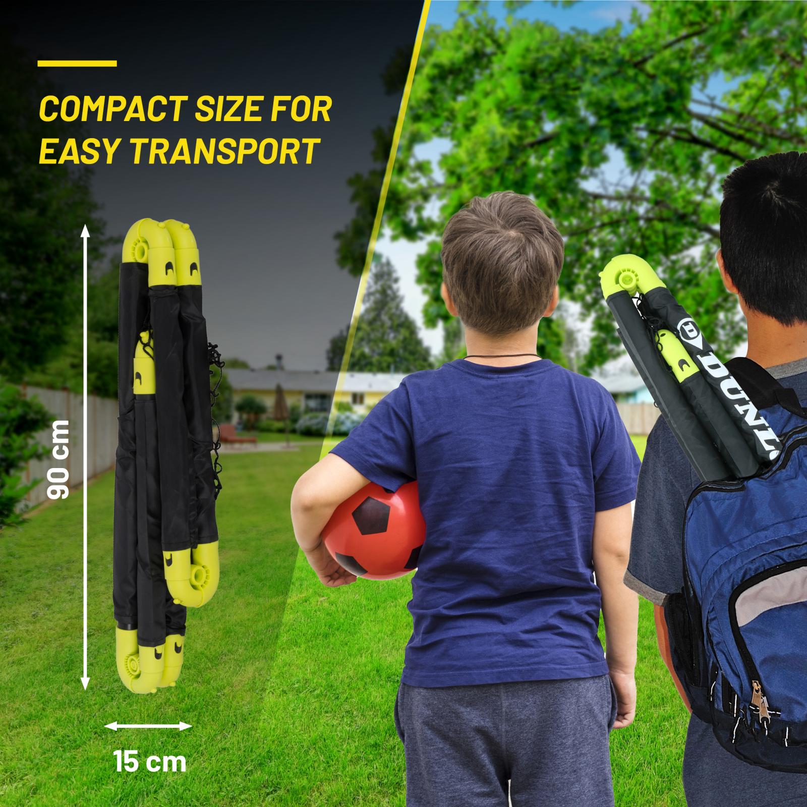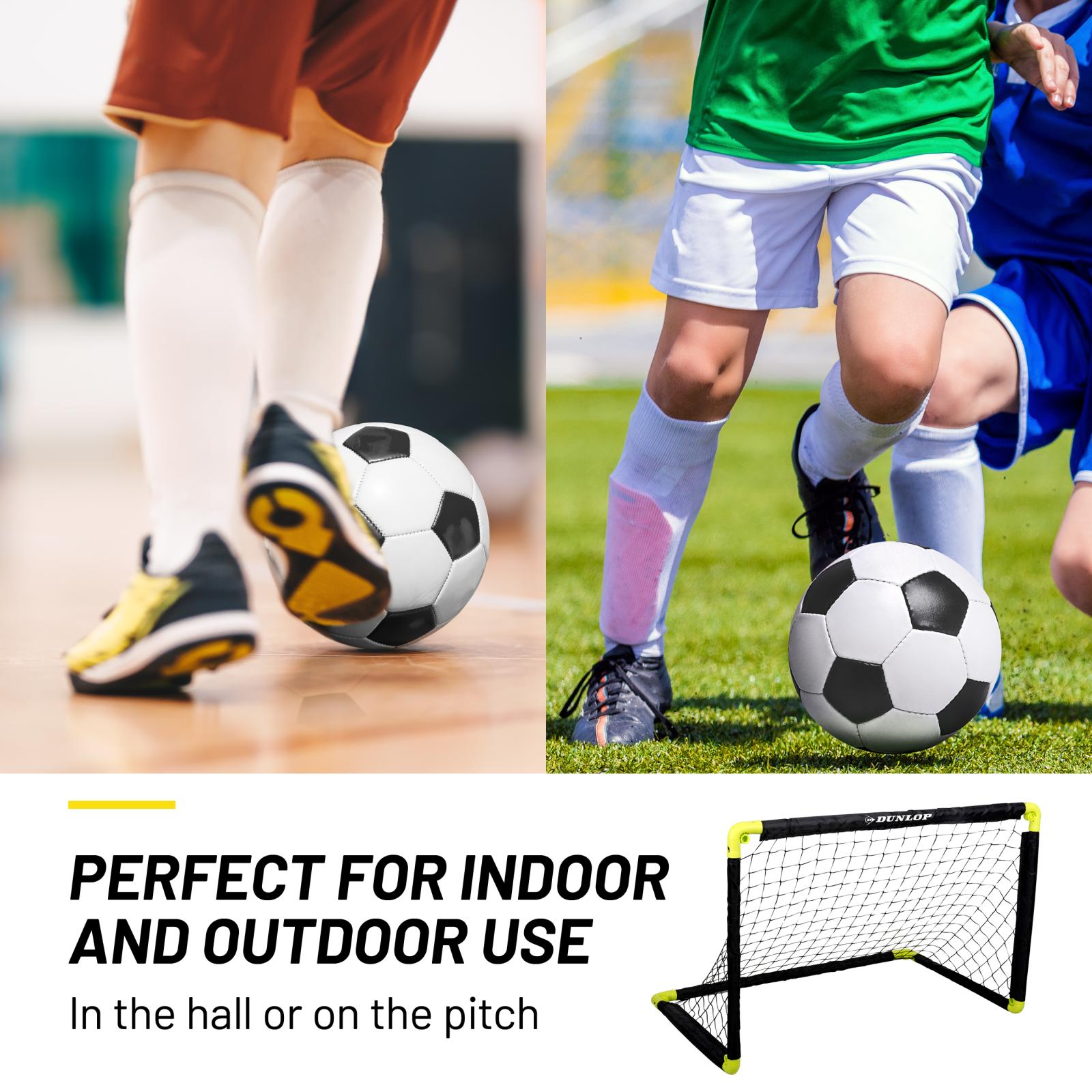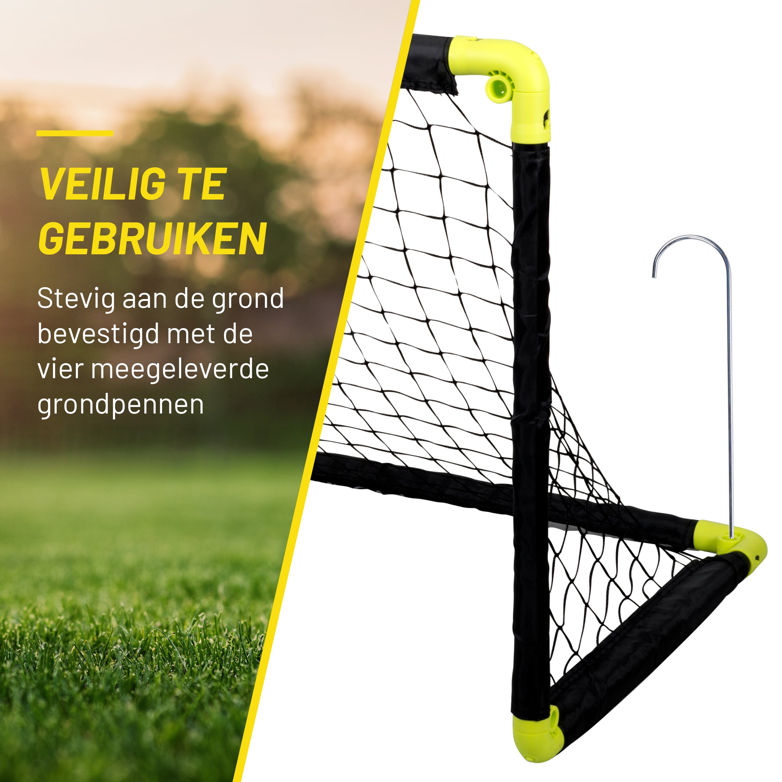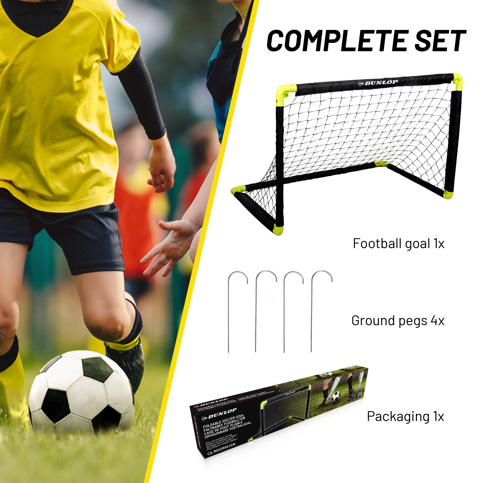 Een potje voetbal met familie of vrienden was nog nooit zo makkelijks als met het opvouwbare voetbaldoel van Dunlop. Oefen op nieuwe skills in je achtertuin of een park dichtbij, en als je voorzichtig bent zelfs binnen. De compacte en opvouwbare voetbalgoal heeft een afmeting van 90 x 56 x 61 centimeter. Doordat je het doel op kunt vouwen neem je hem overal gemakkelijk mee naartoe en kun je hem na gebruik ook makkelijk opbergen. De goal wordt geleverd met 4 metalen haken waarmee je hem buiten aan de grond vast kunt pinnen.
