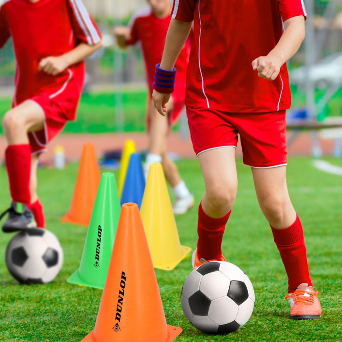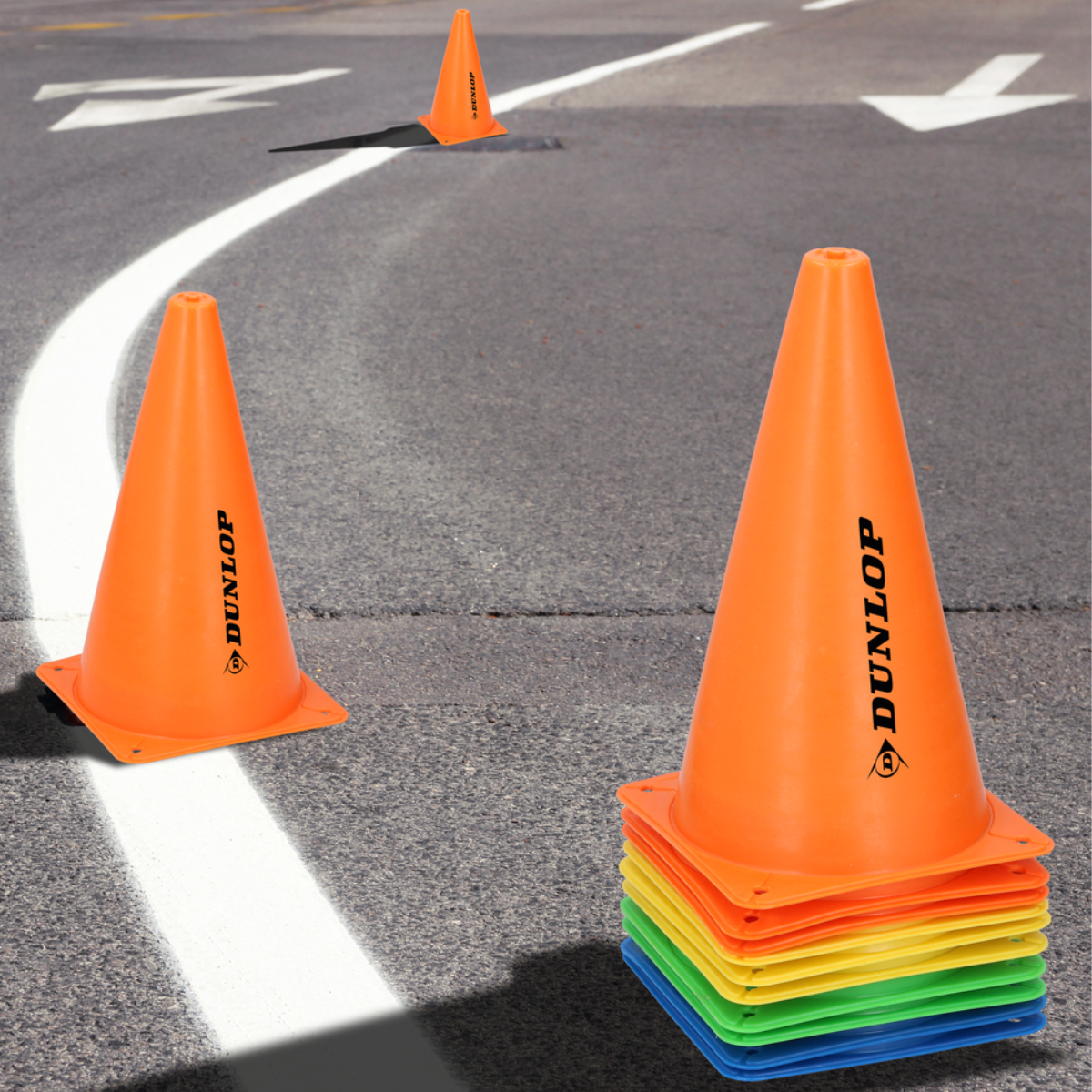 Met de stapelbare pionnen van Dunlop kun je snel een parcours uitzetten op de voetbaltraining of thuis in de eigen achtertuin. Je kunt er ook voor kiezen om met de pilonnen iets af te bakenen, en gebruiken om mee te slalommen. In de set ontvang je 10 verschillende pionnen in maar liefst 4 verschillende kleuren. De pilonnen zijn stapelbaar. Hierdoor neem je ze gemakkelijk mee naar je volgende wedstrijd of training.