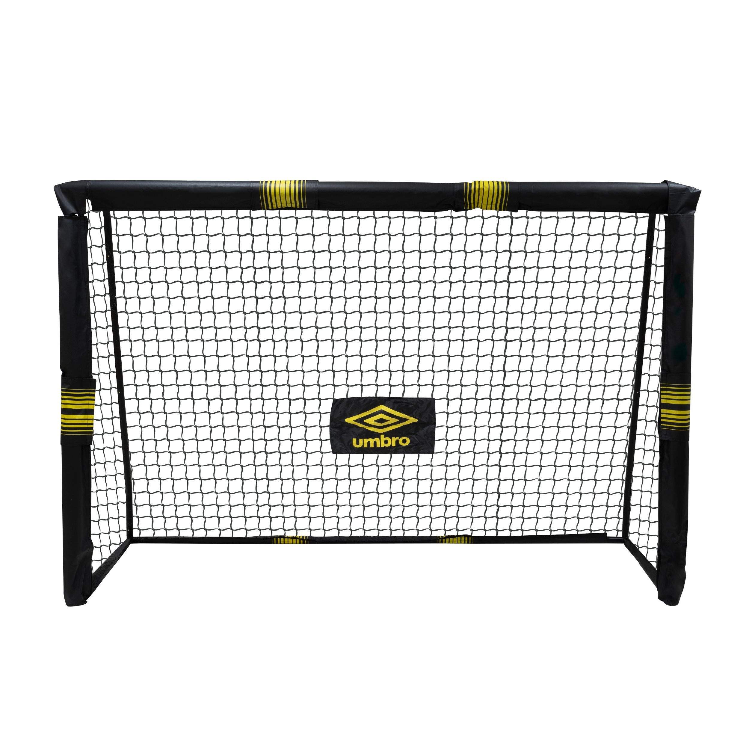 De Umbro voetbalgoal bestaat uit een metalen frame. Hierdoor is het doel uiterst stevig en zelfs weersbestendig. Met de bijgeleverde grondpinnen kun je de goal stevig aan de grond bevestigen zodat deze zelfs bij de hardste doeltrappen overeind blijft staan. De palen die het frame van het doel vormen zijn omringd met EPE-schuim. Wanneer het doel dus wel omvalt of een speler tegen de latten aan loopt tijdens een potje voetbal, komt hij of zij niet direct tegen het metaal aan. Dit maakt de goal een stuk veiliger. Dankzij beschreven stangen en een klikmontage systeem is de voetbalgoal snel en gemakkelijk opgezet zodat je binnen de kortste keren aan een voetbal wedstijd kunt beginnen.