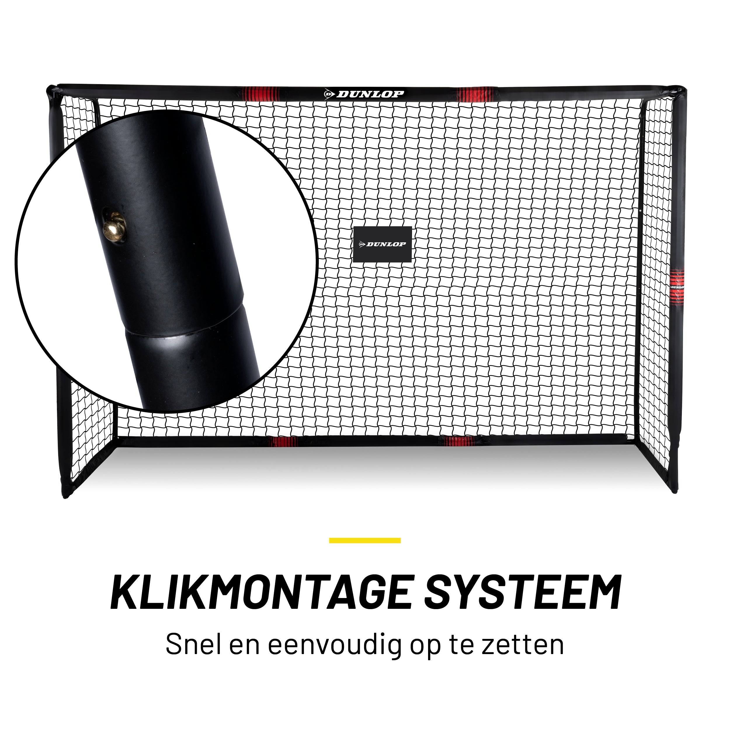 Dankzij beschreven stangen en een klikmontage systeem is de voetbalgoal snel en gemakkelijk opgezet zodat je binnen de kortste keren aan een voetbal wedstijd kunt beginnen.