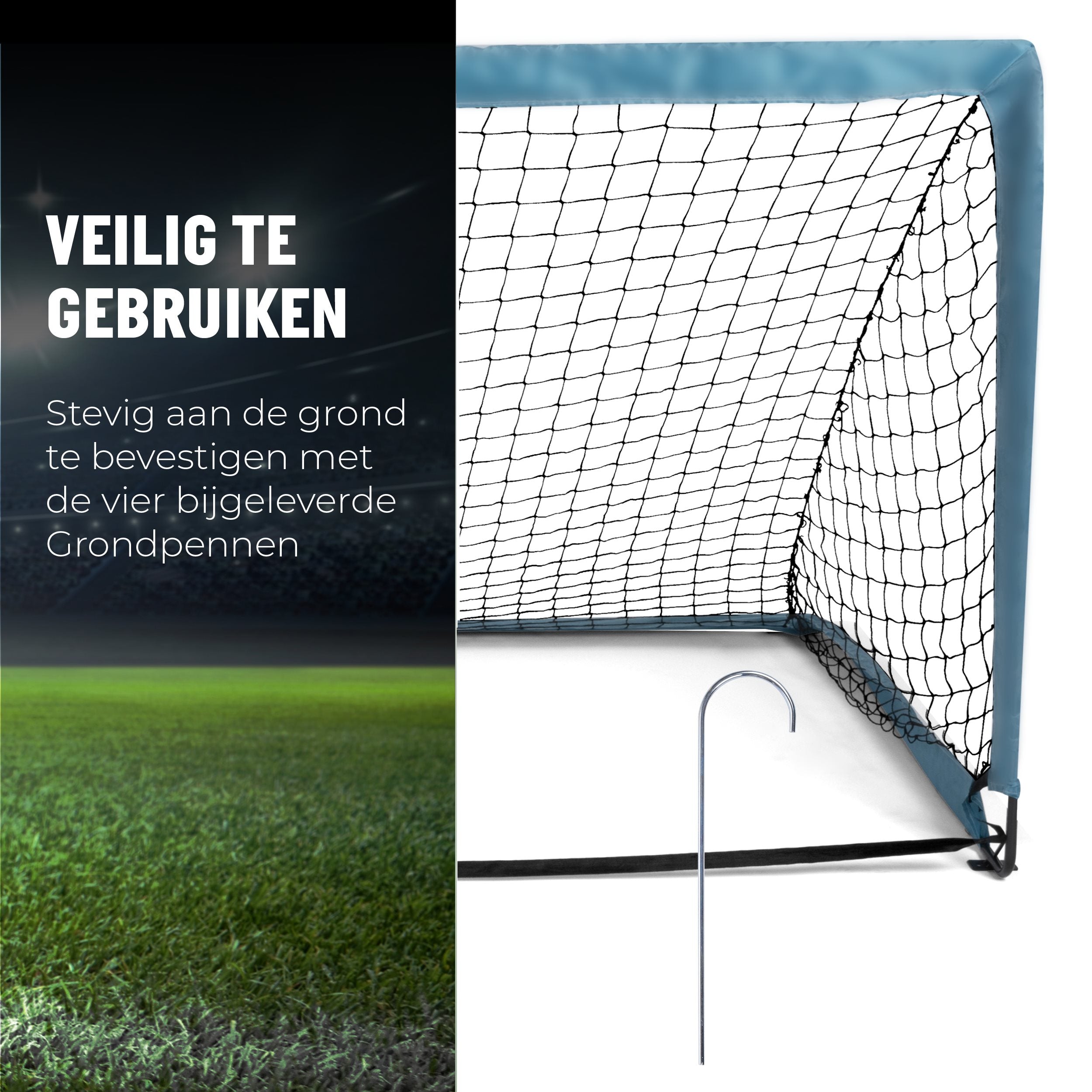 Je voetbalt voortaan waar en wanneer je wil met dit draagbare voetbaldoel van Umbro dat slechts 1,5 kilo weegt. Dankzij het lichte gewicht van de goal pak je hem makkelijk op, om hem vervolgens te verplaatsen naar een plek naar voorkeur. Een ander voordeel van het licht gewicht is dat je dit voetbaldoel zowel buiten als binnen kunt gebruiken. Indien je de Umbro goal buiten gebruikt kun je hem met de 4 meegeleverde grondhaken stevig vast zetten in de grond. Met zijn afmeting van 200 x 100 x 100 centimeter is de goal het perfecte voetbaltrainingsmateriaal voor alle leeftijden.