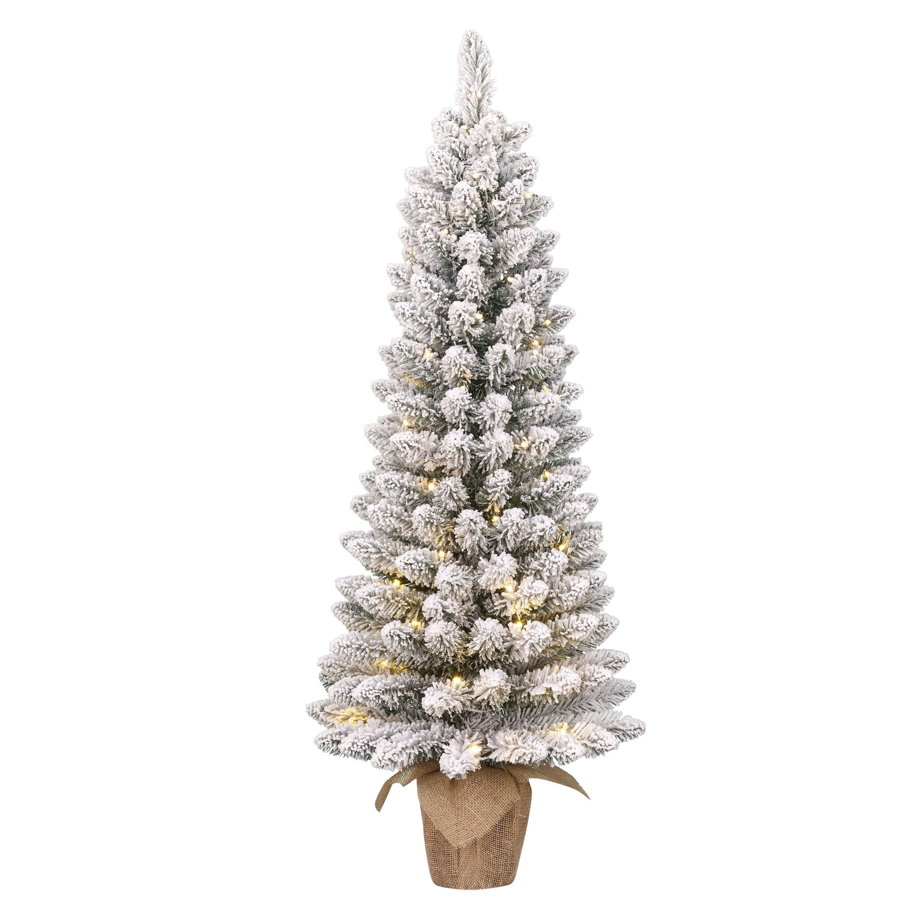 Black Box Trees Gerlos Smalle Kunstkerstboom in Pot met Warm Witte LED Verlichting - H120 x Ø51 cm