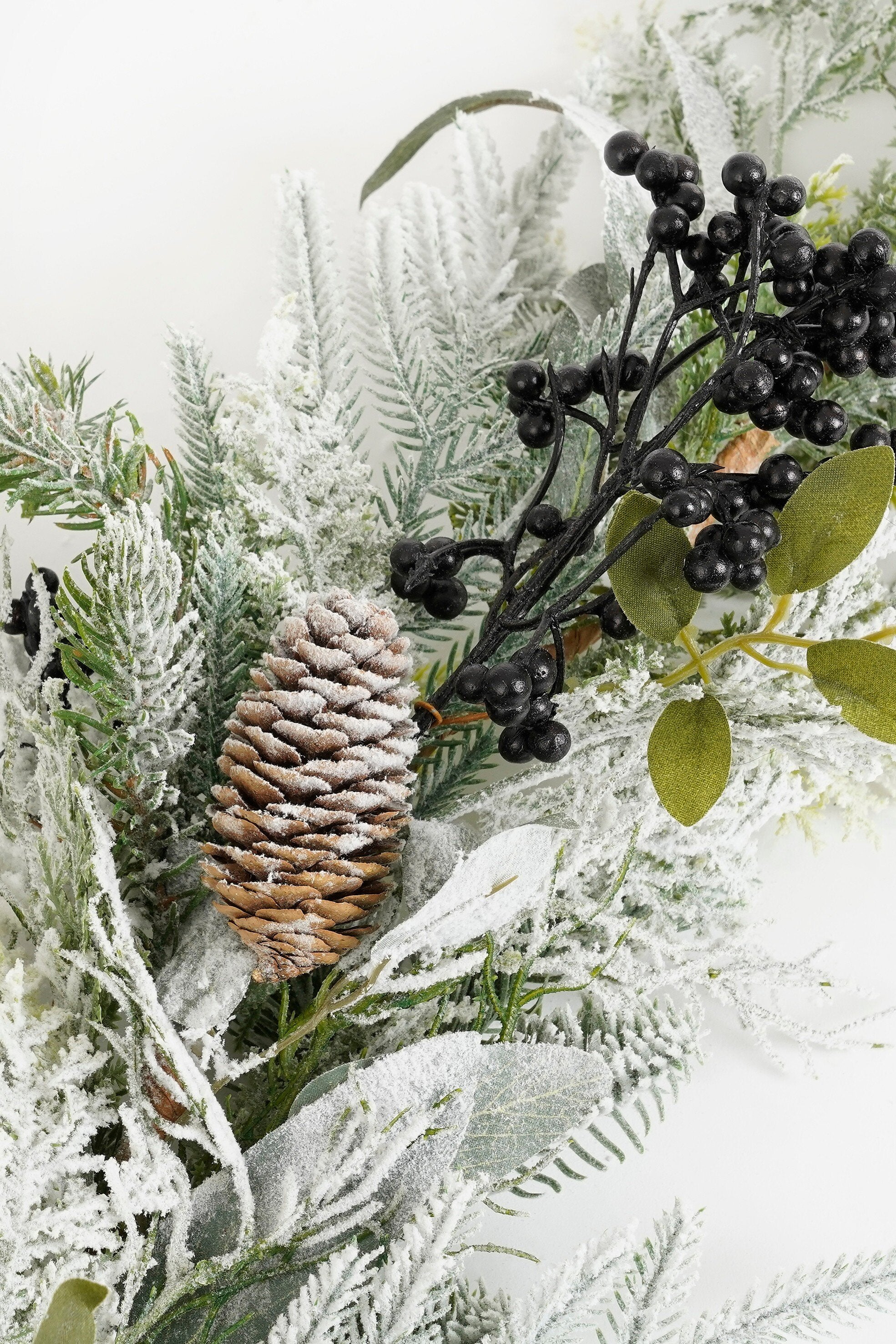 De Vesper guirlande van Mica Decorations brengt direct een winterse sfeer in huis. De groene takken zijn subtiel bedekt met een bevroren afwerking, dennenappels en zwarte besjes voor een opvallende uitstraling. Je vouwt de slinger eenvoudig uit en stylet hem naar wens. Leg hem op de vensterbank, over de schouw of als middelpunt op tafel tijdens het kerstdiner. Gemaakt van stevig polyetheen, waardoor je lang plezier hebt van deze kerstslinger. Ideaal als kerst decoratie met een bijzondere uitstraling. Hij heeft een lengte van 180 cm, een breedte van 15 cm en een hoogte van 10 cm.