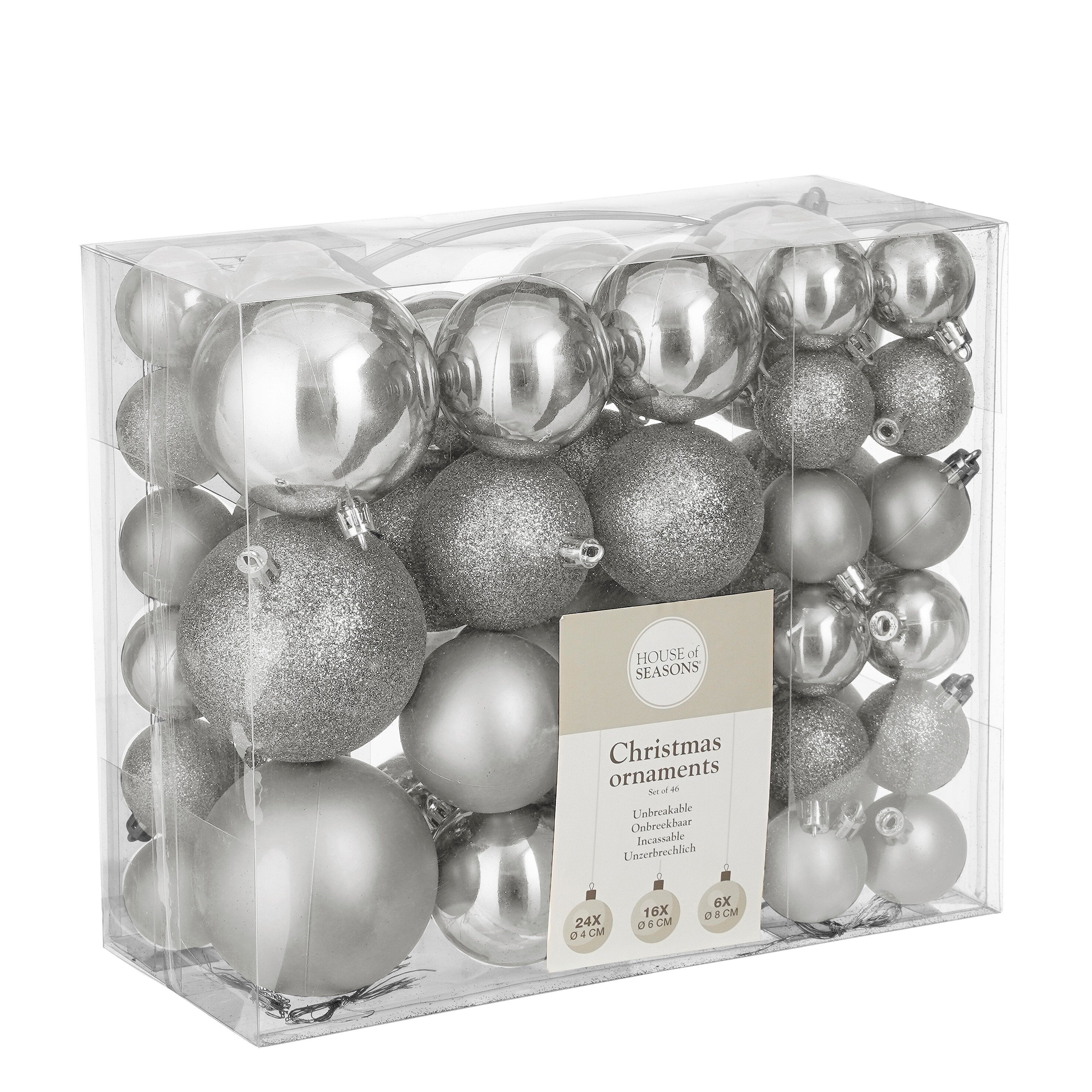 House of Seasons Plastic Kerstballen Set - 46 Stuks - zilver