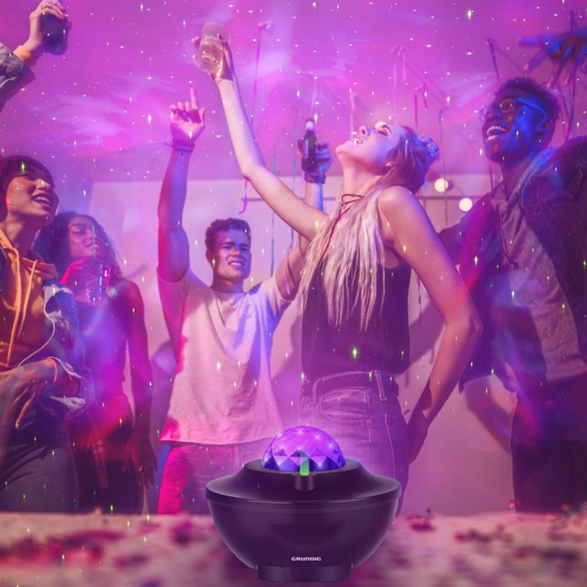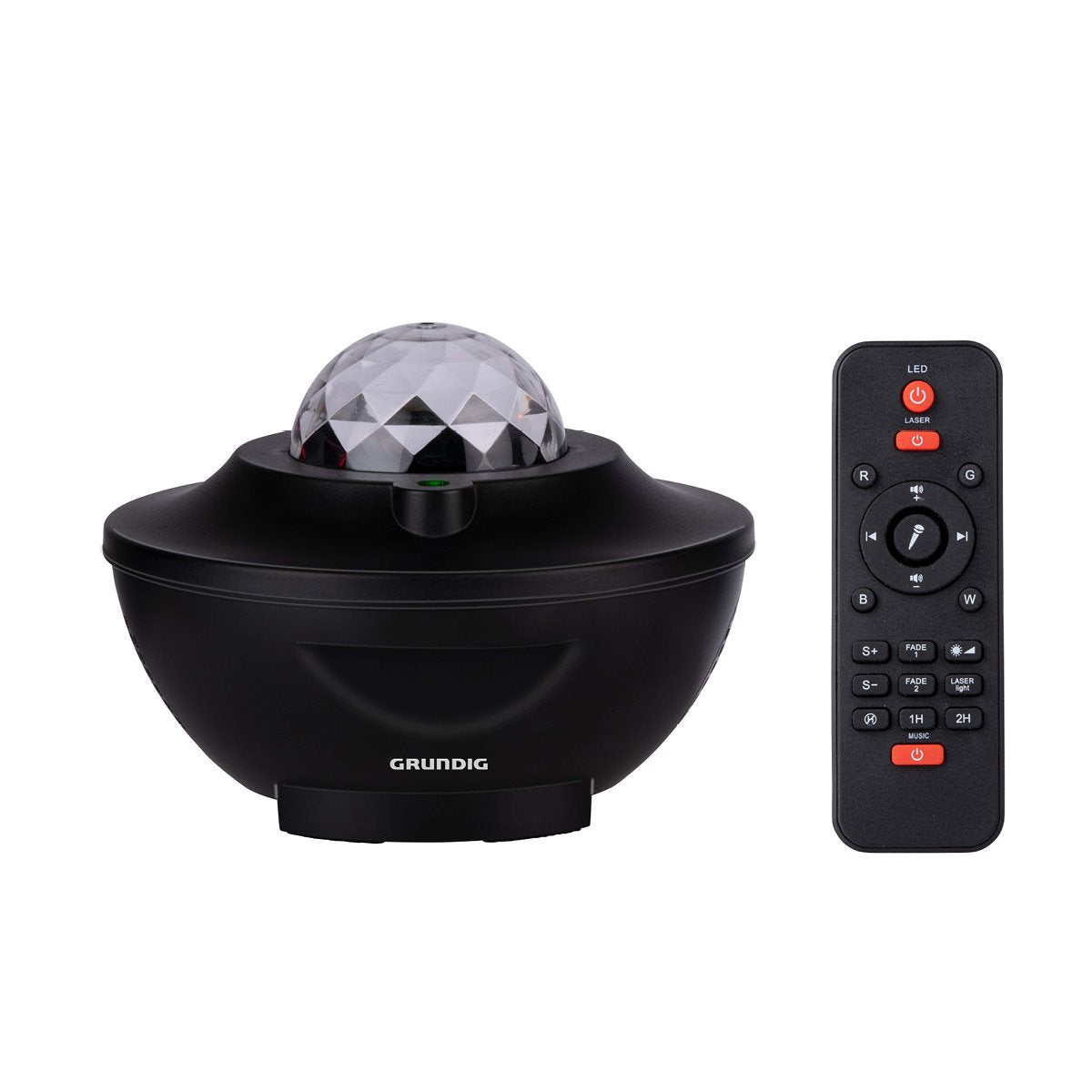 Hoe leuk is deze sterrenhemel projector van Grundig? Met slechts één lamp kies je uit 10 verschillende soorten projecties die een kamer naar keuze transformeert in een kleurrijke galaxy. Bijgeleverd zijn de afstandsbediening, waardoor je de lamp ook op afstand kunt besturen, en een USB oplaadkabel waarmee je de lamp van stroom voorziet. Naast dat de galaxy projector een mooi licht geeft, heb je ook de mogelijkheid muziek af te spelen via de bluetooth speaker. De nachtlamp is voorzien van laserlicht en timer. Je kunt je telefoon of ander apparaat verbinden met de sterrenhemel projector dankzij een USB kabel of via bluetooth.