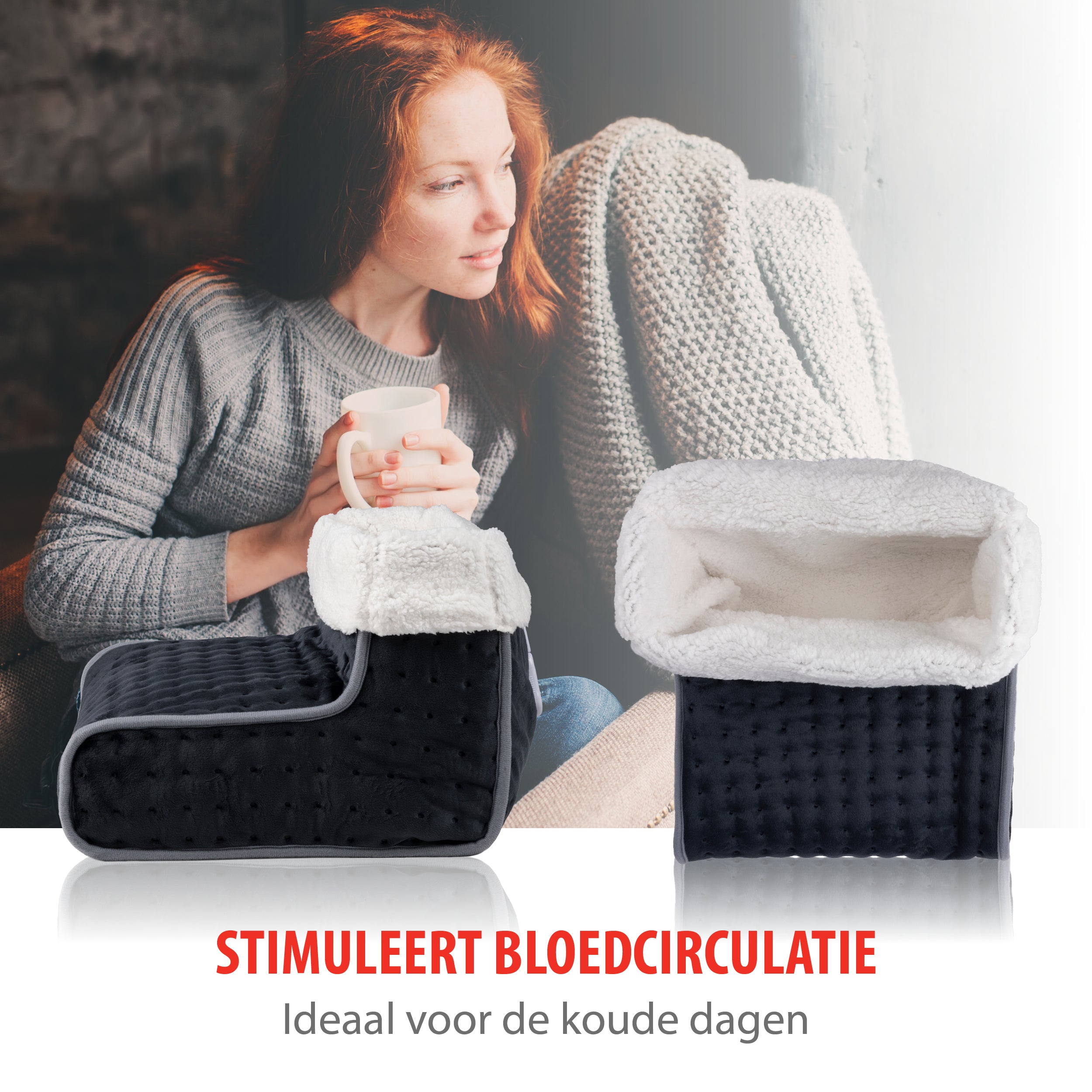 De elektrische voetverwarmer is eigenlijk een reuze pantoffel waar je beide voeten tegelijkertijd in doet. Deze elektrische verwarming is heerlijk als je bijvoorbeeld thuiskomt van een winterse wandeling of wanneer je je niet helemaal fit voelt. Fijn als je 's avonds op de bank zit en ook als je thuis aan het werk bent.