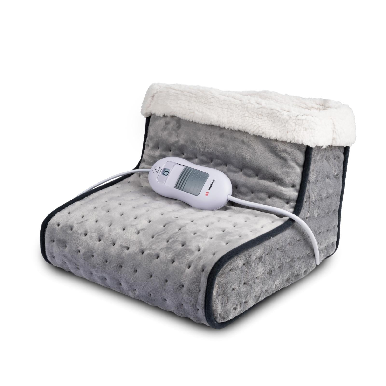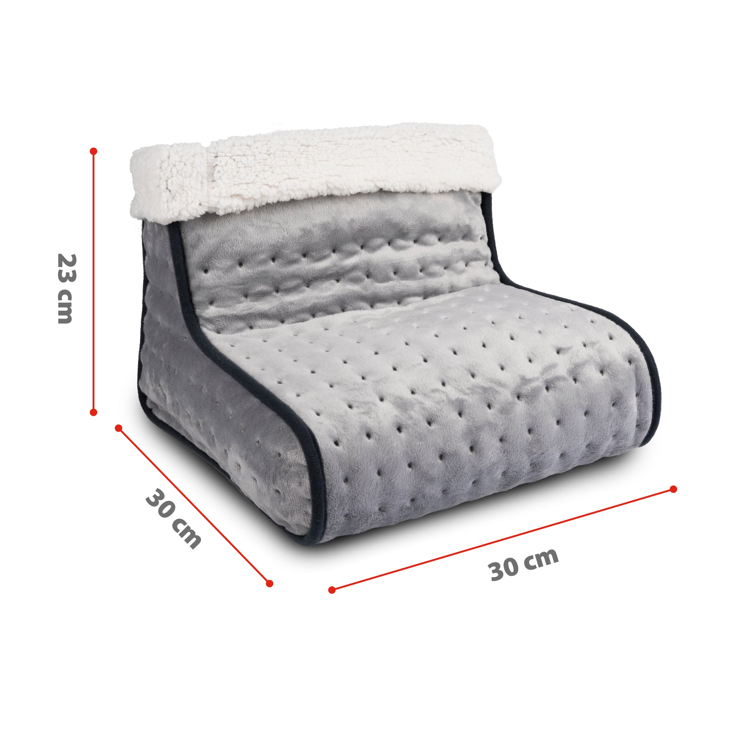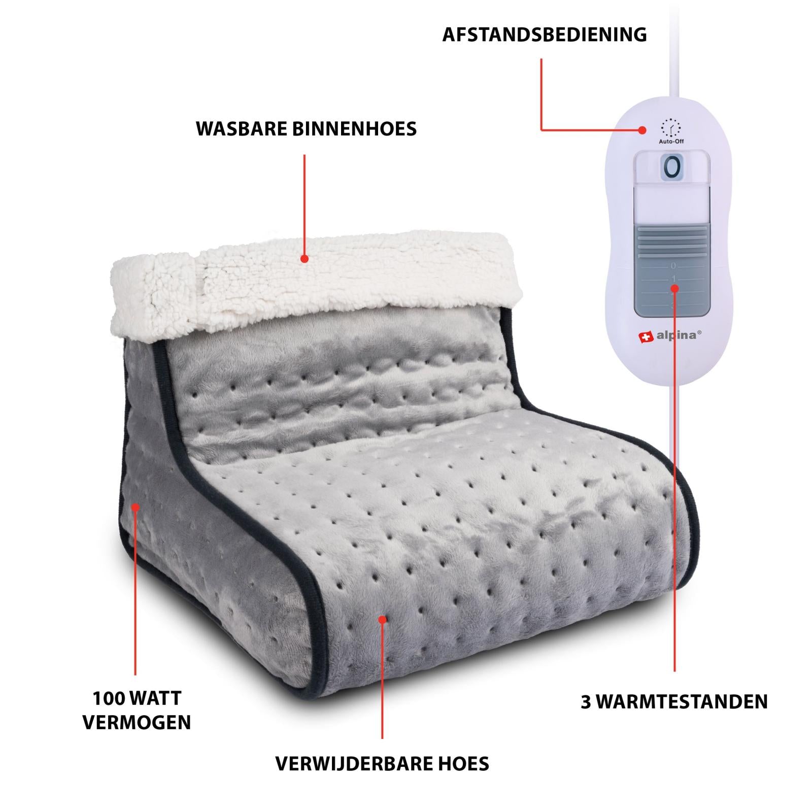 Met deze comfortabele lichtgrijze elektrische voetenwarmer van alpina heb je voortaan geen last meer van koude voeten. De voetenverwarmer is eigenlijk een reuze pantoffel waar je beide voeten tegelijkertijd in doet. Heerlijk als je bijvoorbeeld thuiskomt van een winterse wandeling of wanneer je je niet helemaal fit voelt. Fijn als je 's avonds op de bank zit en ook als je thuis aan het werk bent.