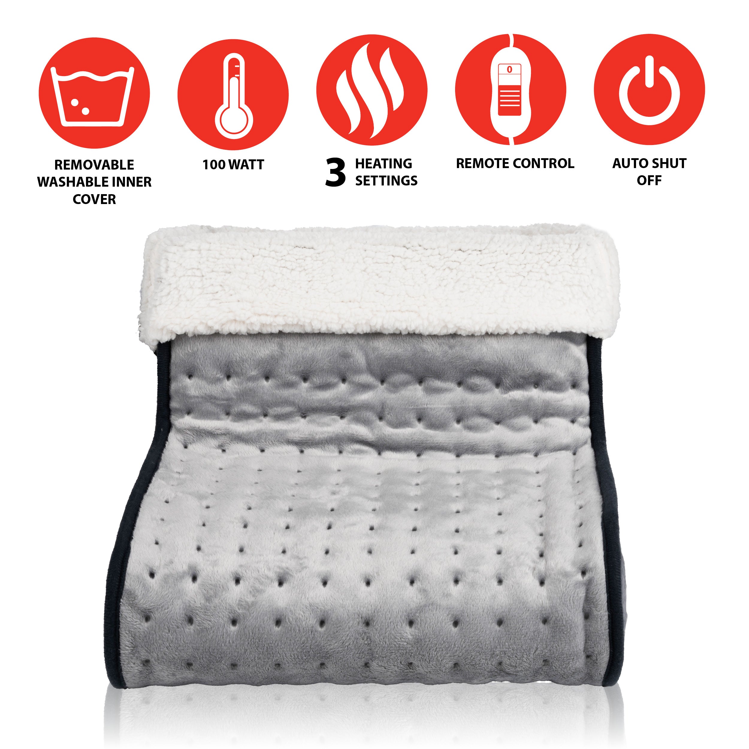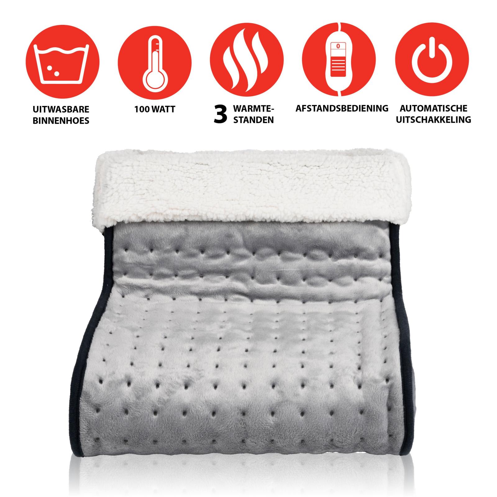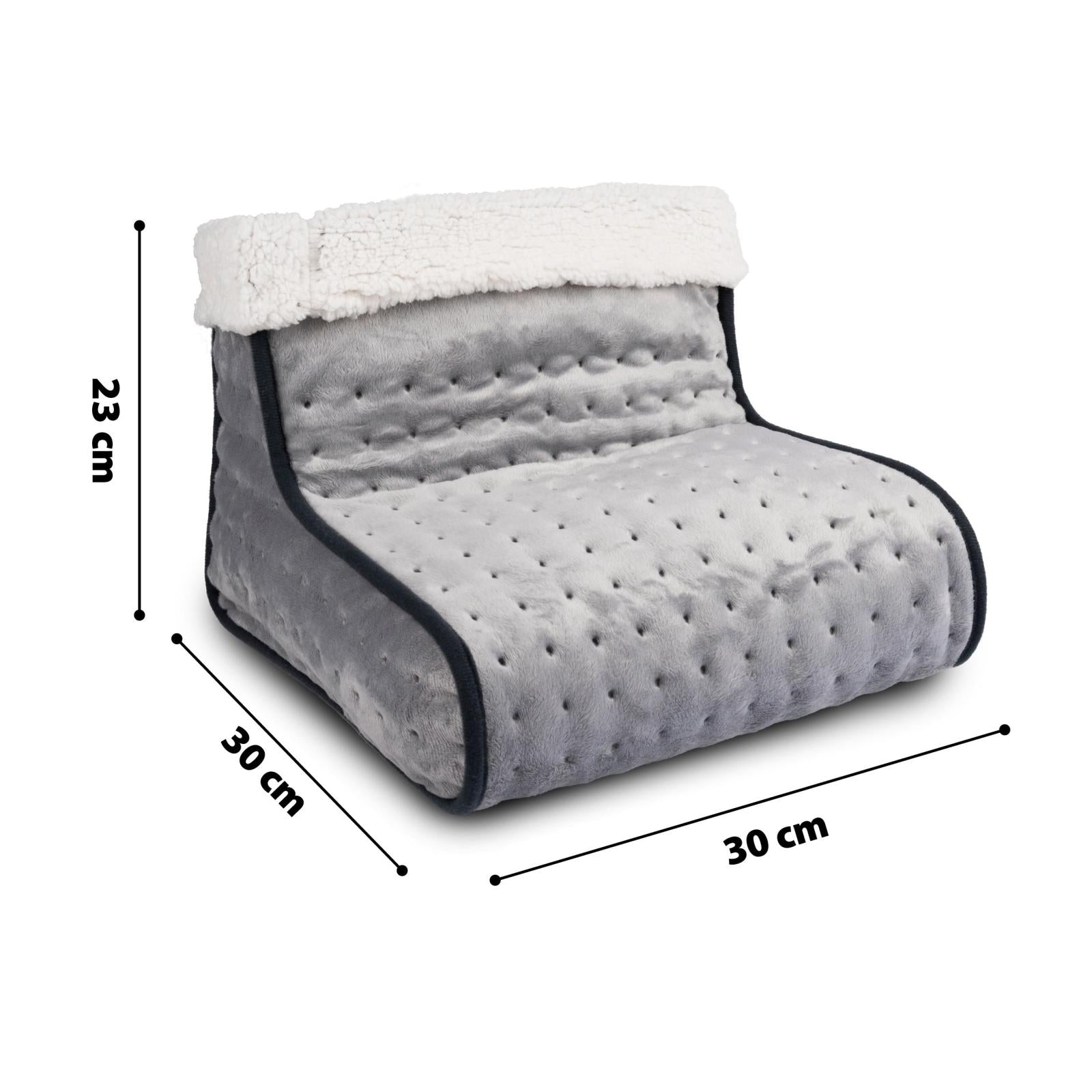 Met deze comfortabele lichtgrijze elektrische voetenwarmer van alpina heb je voortaan geen last meer van koude voeten. De voetenverwarmer is eigenlijk een reuze pantoffel waar je beide voeten tegelijkertijd in doet. Heerlijk als je bijvoorbeeld thuiskomt van een winterse wandeling of wanneer je je niet helemaal fit voelt. Fijn als je 's avonds op de bank zit en ook als je thuis aan het werk bent.