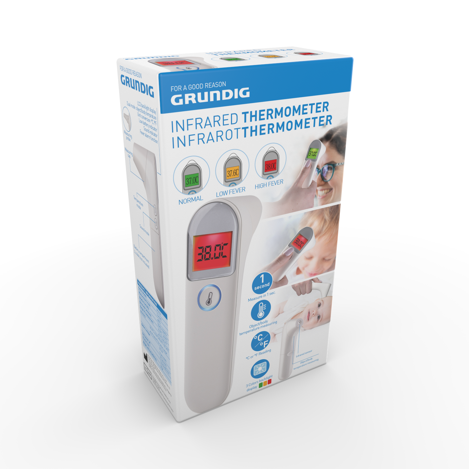 Voel je je niet helemaal fit en wil je weten of je verhoging of koorts hebt? Of ziet je kind er wat ziek uit? Met deze infrarood voorhoofd- en oorthermometer van Grundig zie je in slechts 1 seconde wat je lichaamstemperatuur is. De thermometer is geschikt voor volwassenen, kinderen en baby's. Je kan hem zelfs gebruiken voor een temperatuurmeting van objecten. Daarnaast heeft deze koortsthermometer nog allerlei handige functies.