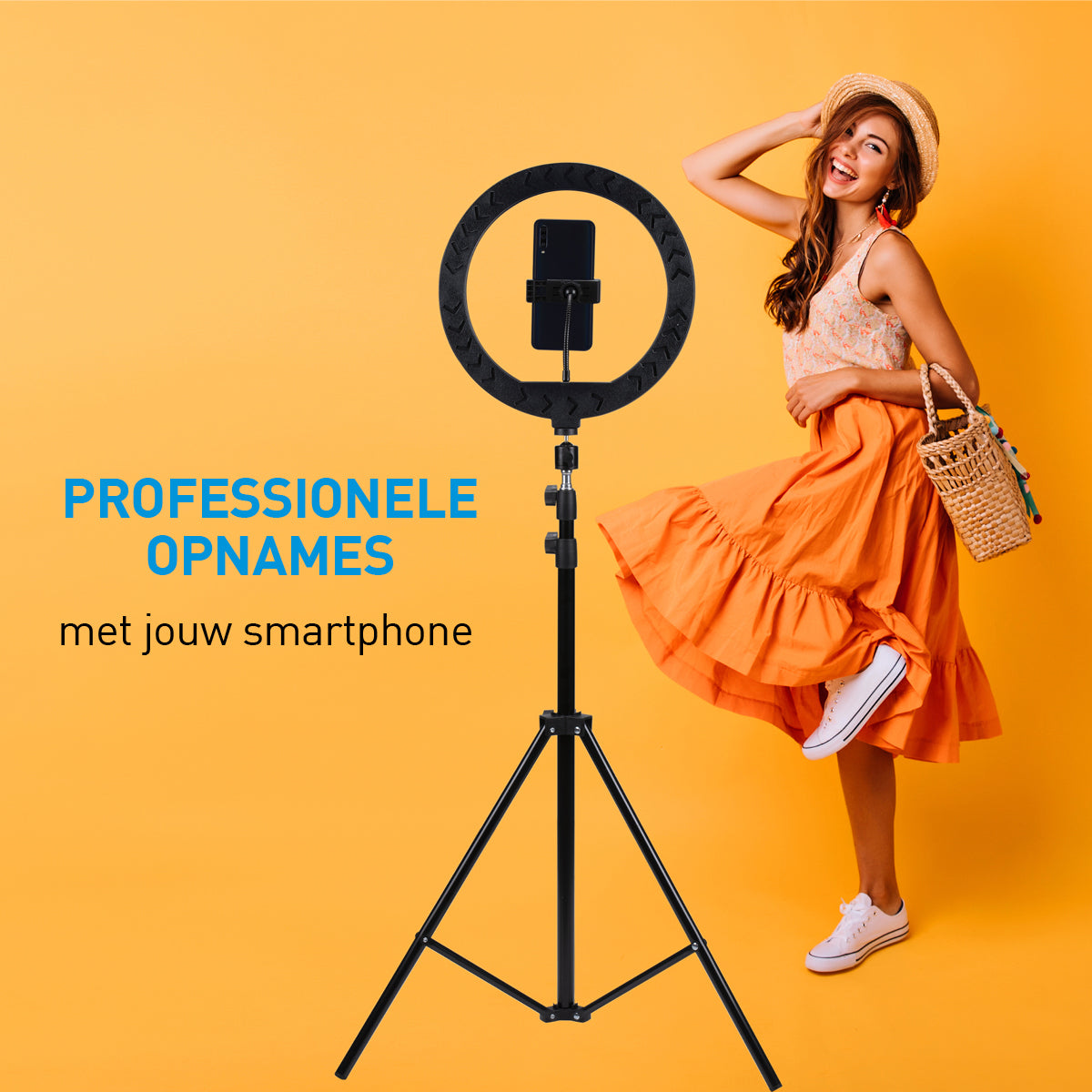 Met de Grundig ringlight op statief maak je met jouw smartphone professionele en kwalitatieve foto's en opnames. Zo is de lamp met telefoonhouder perfect voor het filmen van vlogs, video's op youtube, livestreams en TikTok video's of Instagram reels. Daarnaast schiet je ook met gemak een professionele foto vanuit verschillende verstelbare hoeken. Zo hoef je nooit meer om hulp te vragen bij het maken van jouw nieuwste Instagramwaardige foto.