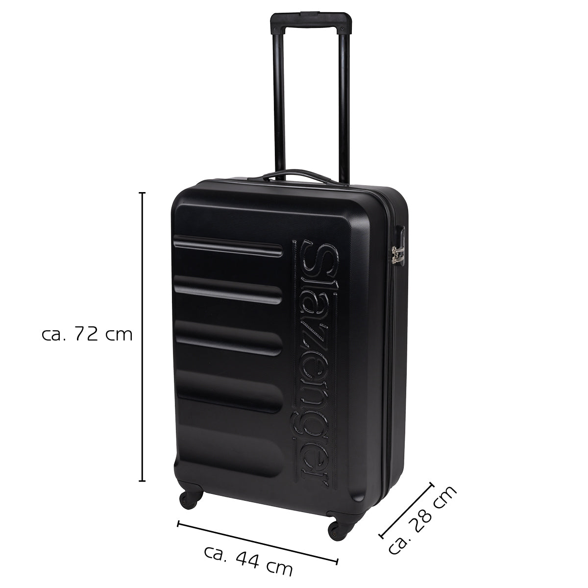 - Tot slot de grote koffer met een afmeting van 72 x 44 x 28. Deze koffer is perfect als ruimbagage en biedt met zijn afmetingen genoeg ruimte om kleding en essentials voor een lange vakantie in te pakken;