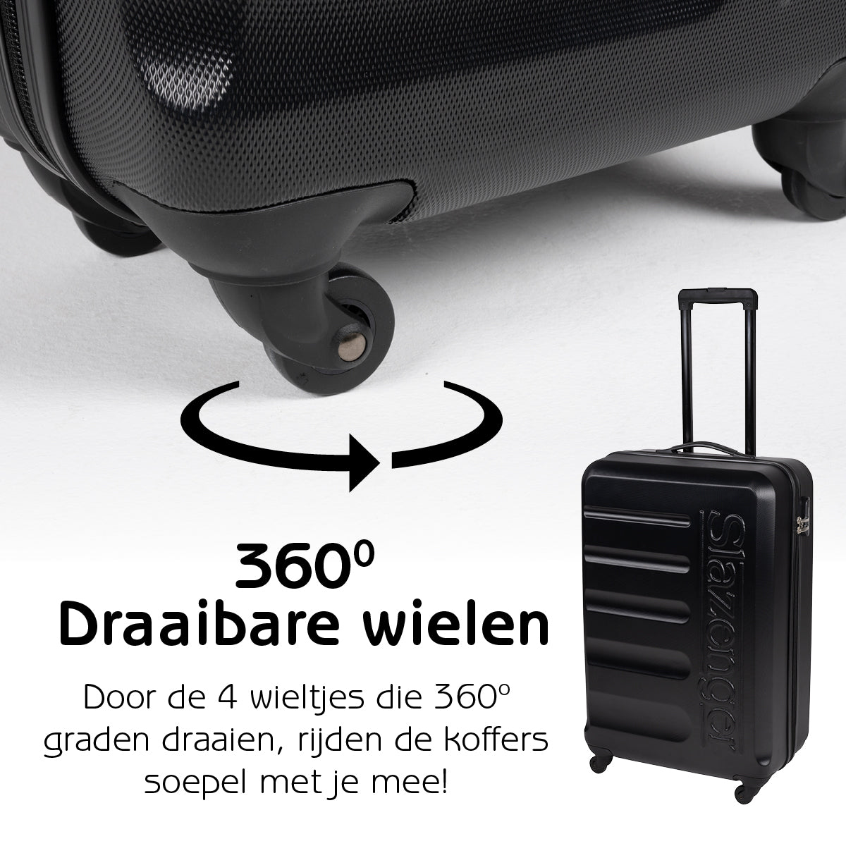 - Elke hardcase koffer uit deze kofferset beschikt over 4 wieltjes en een stevig handvat. Voor extra veiligheid beschikt de koffer set over een cijferslot met 3-cijferige combinatie die je zelf naar voorkeur in kunt stellen.