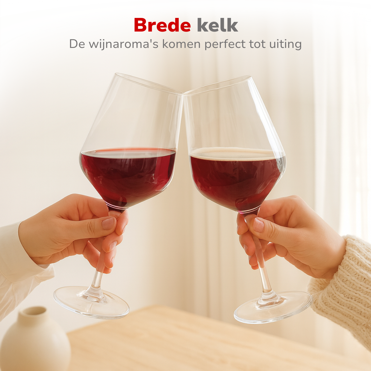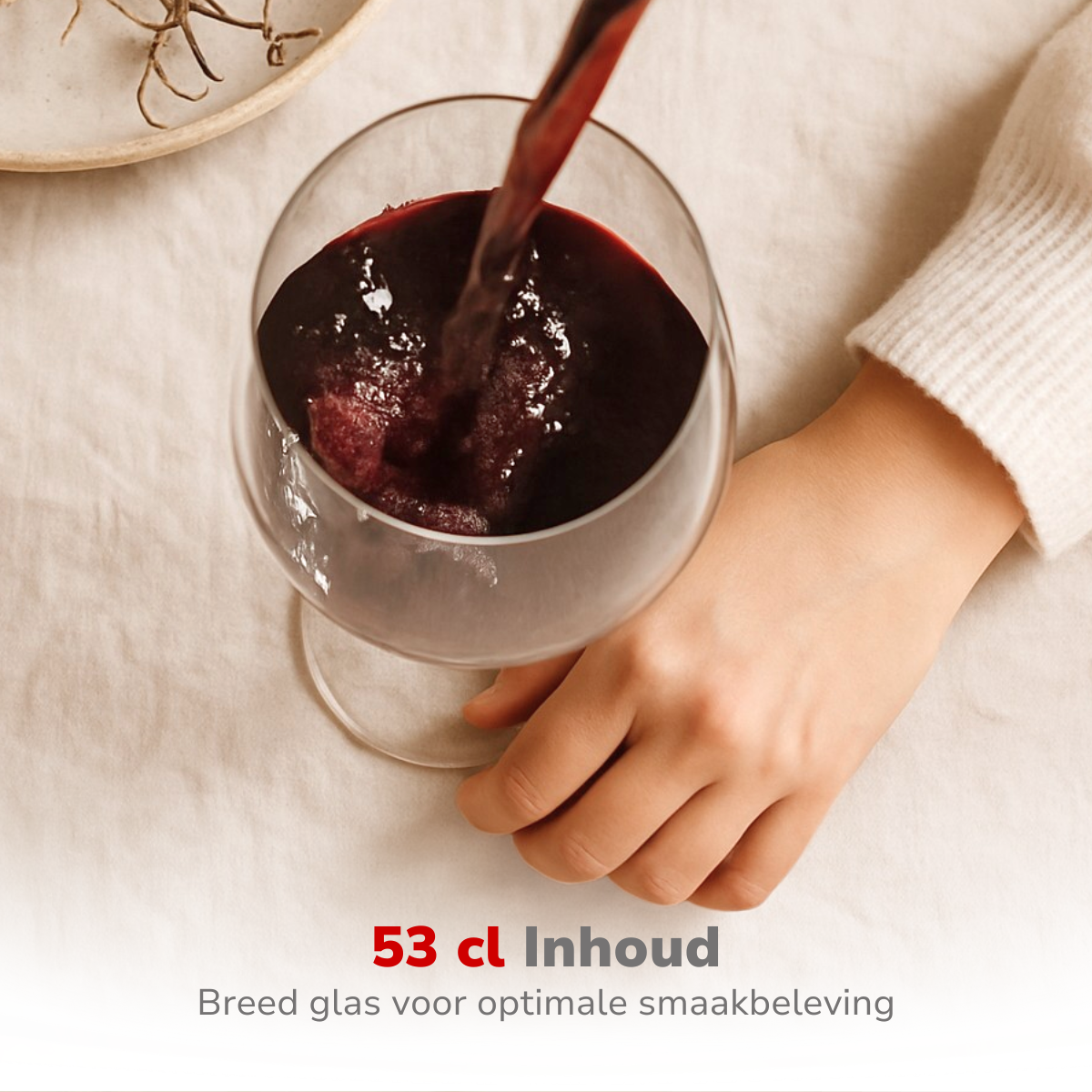 - Breed glas met een inhoud van 53 centilliter per wijnglas voor optimale smaakbeleving