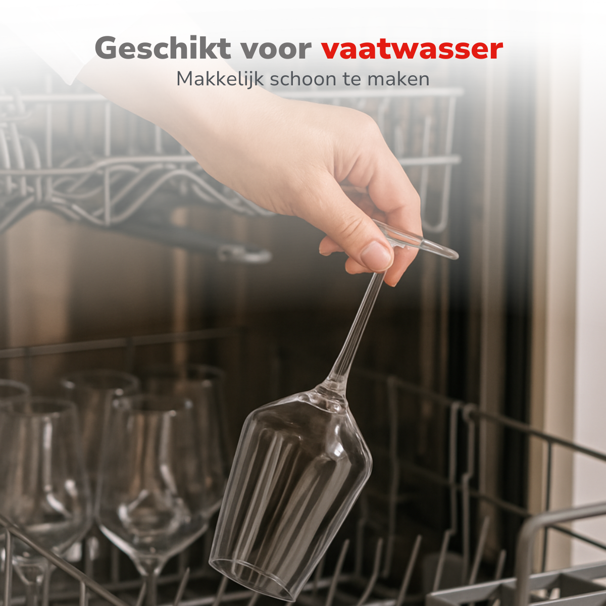 - Na gebruik kun je de wijnglazen in de vaatwasser zetten